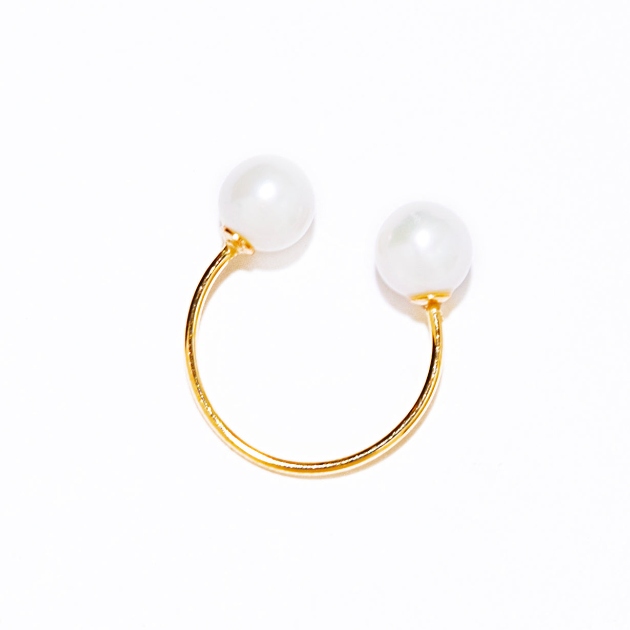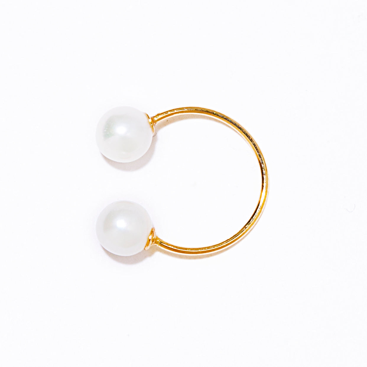 両側に淡水パールを配置した、モード感のあるパールイヤカフです。