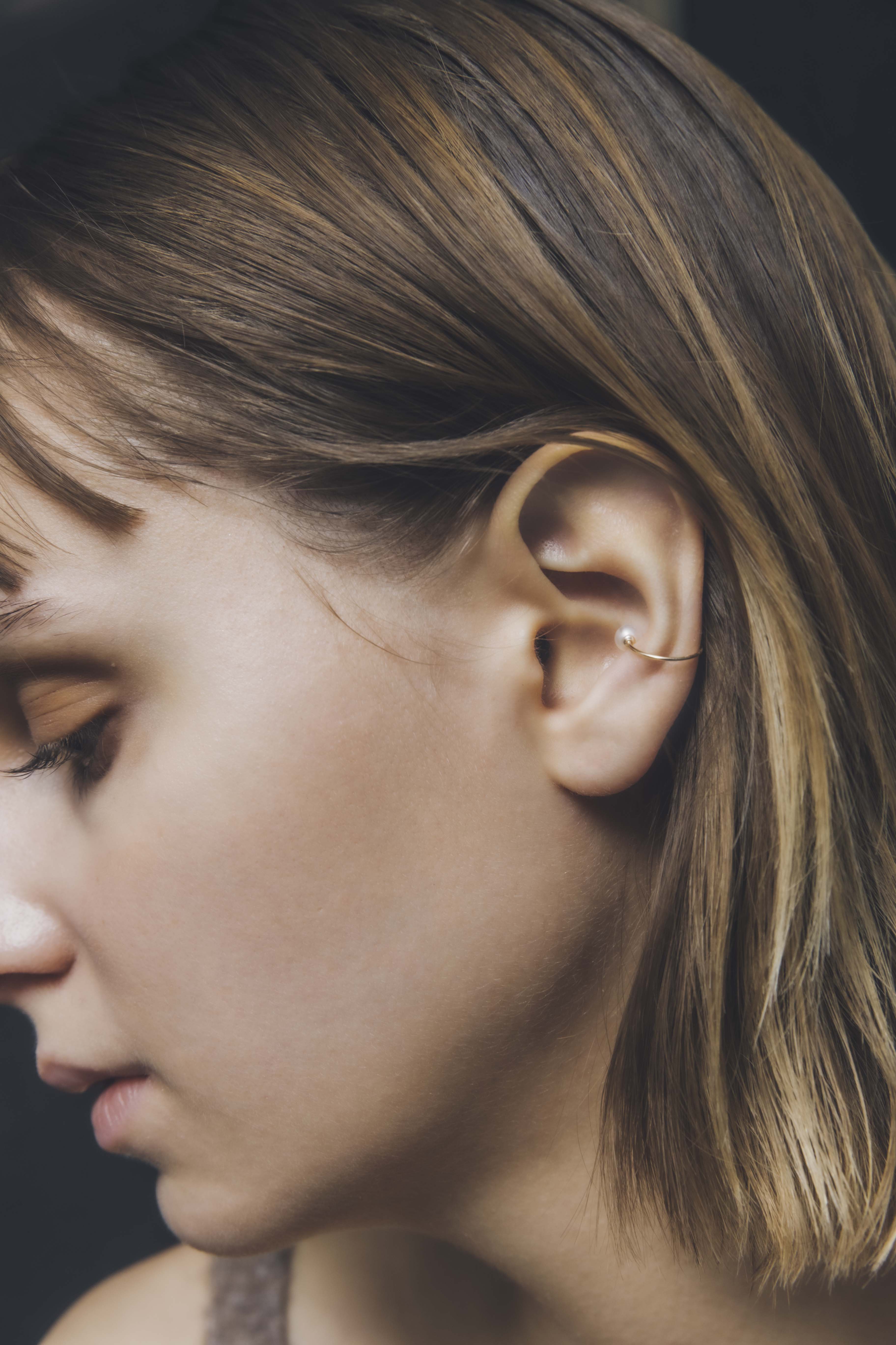 ニュアンスヘアから見え隠れするイヤカフが、女性の強さと繊細さを表現します。
