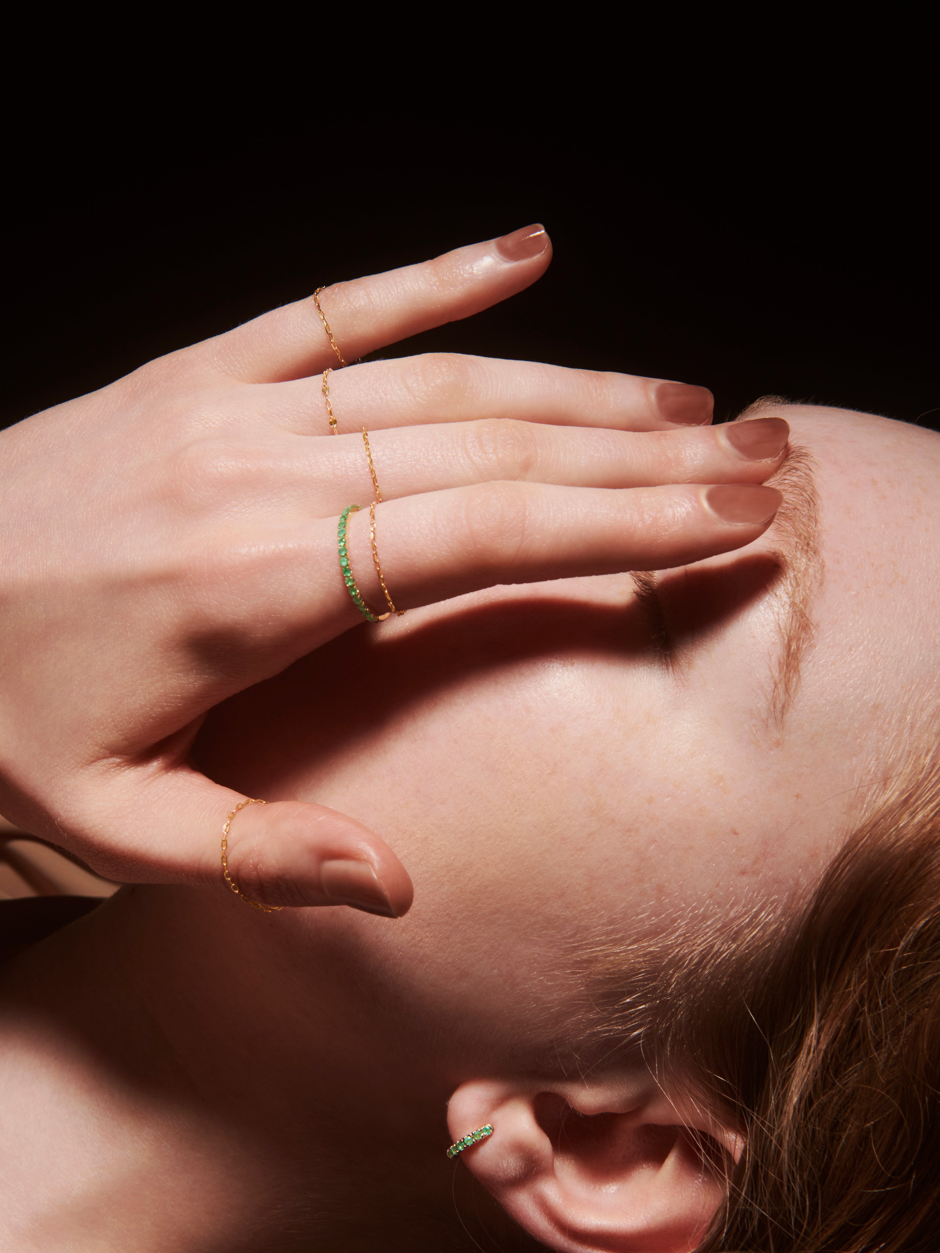 存在感がありつつも、キャッチレスかつ耳に隙間なく沿うフープデザインは肌馴染みが良く、顔周りをすっきり見せます。