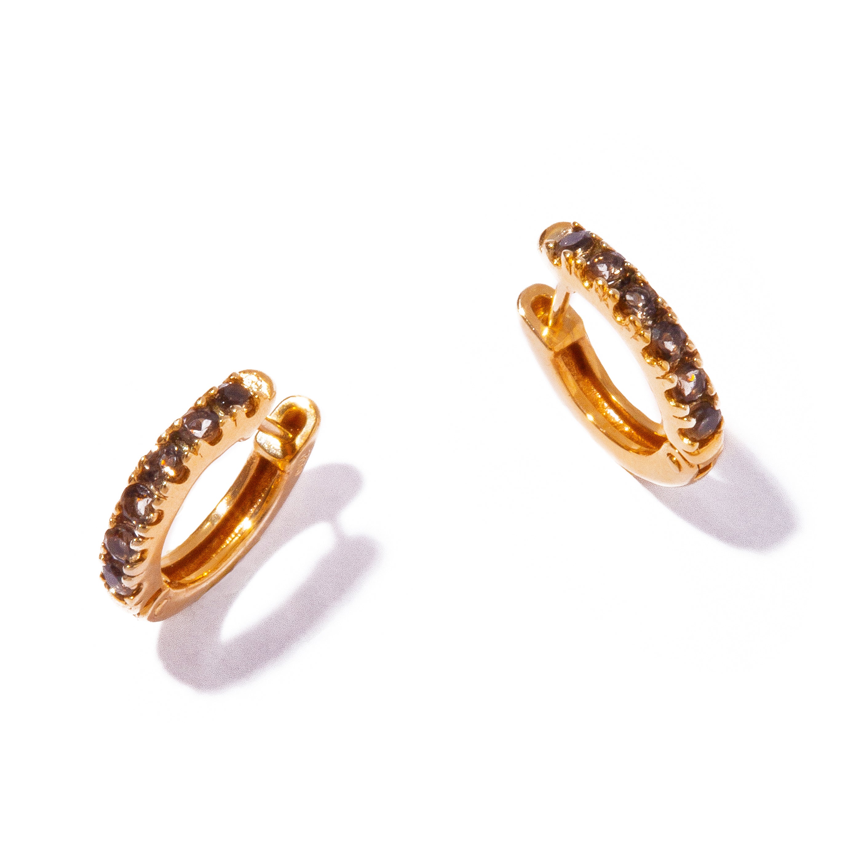 正面に敷き詰めたスモーキークォーツのモダンな輝きとシャープな線によって、凛としたオーラを放つピアス。