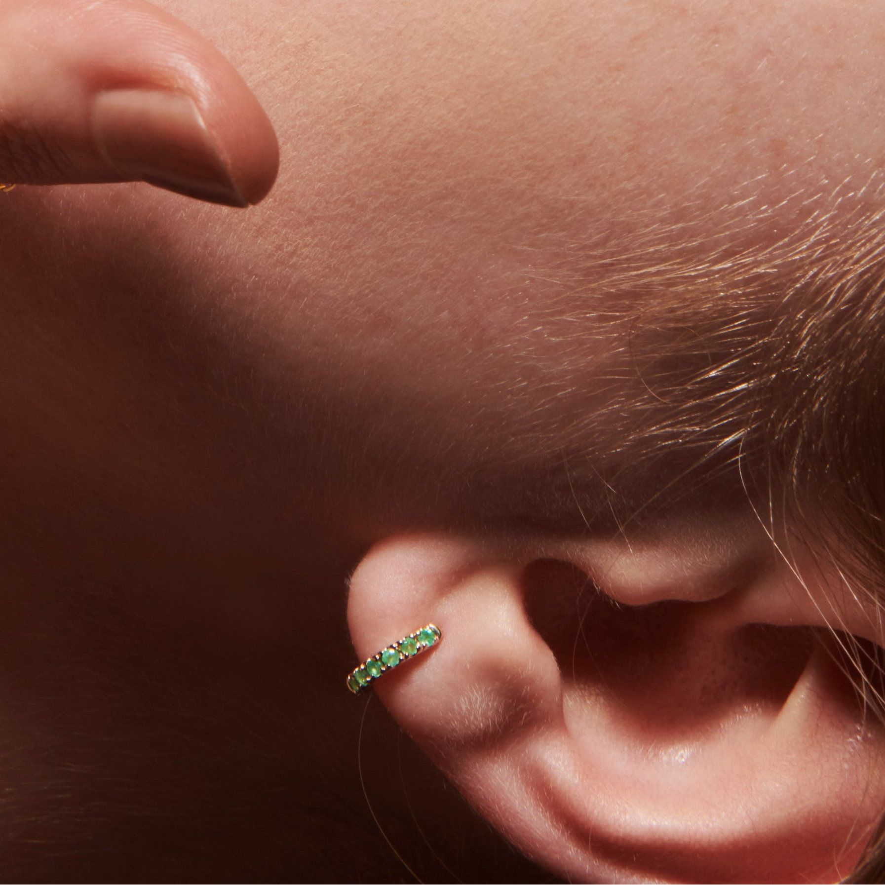 存在感がありつつも、キャッチレスかつ耳に隙間なく沿うフープデザインは肌馴染みが良く、顔周りをすっきり見せます。