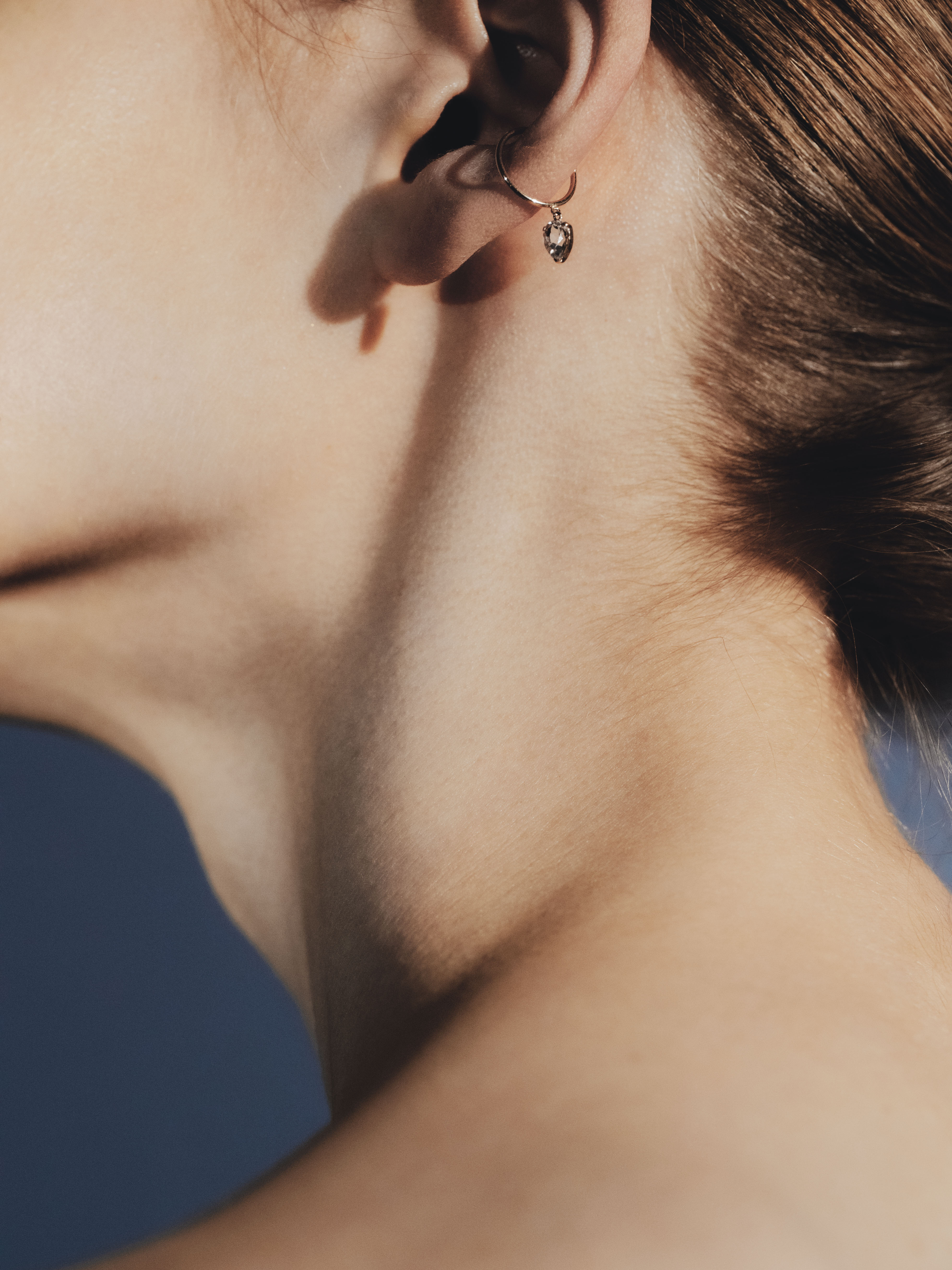 着用すると、澄んだ色合いのストーンが宙に浮かぶようにたゆたいます。