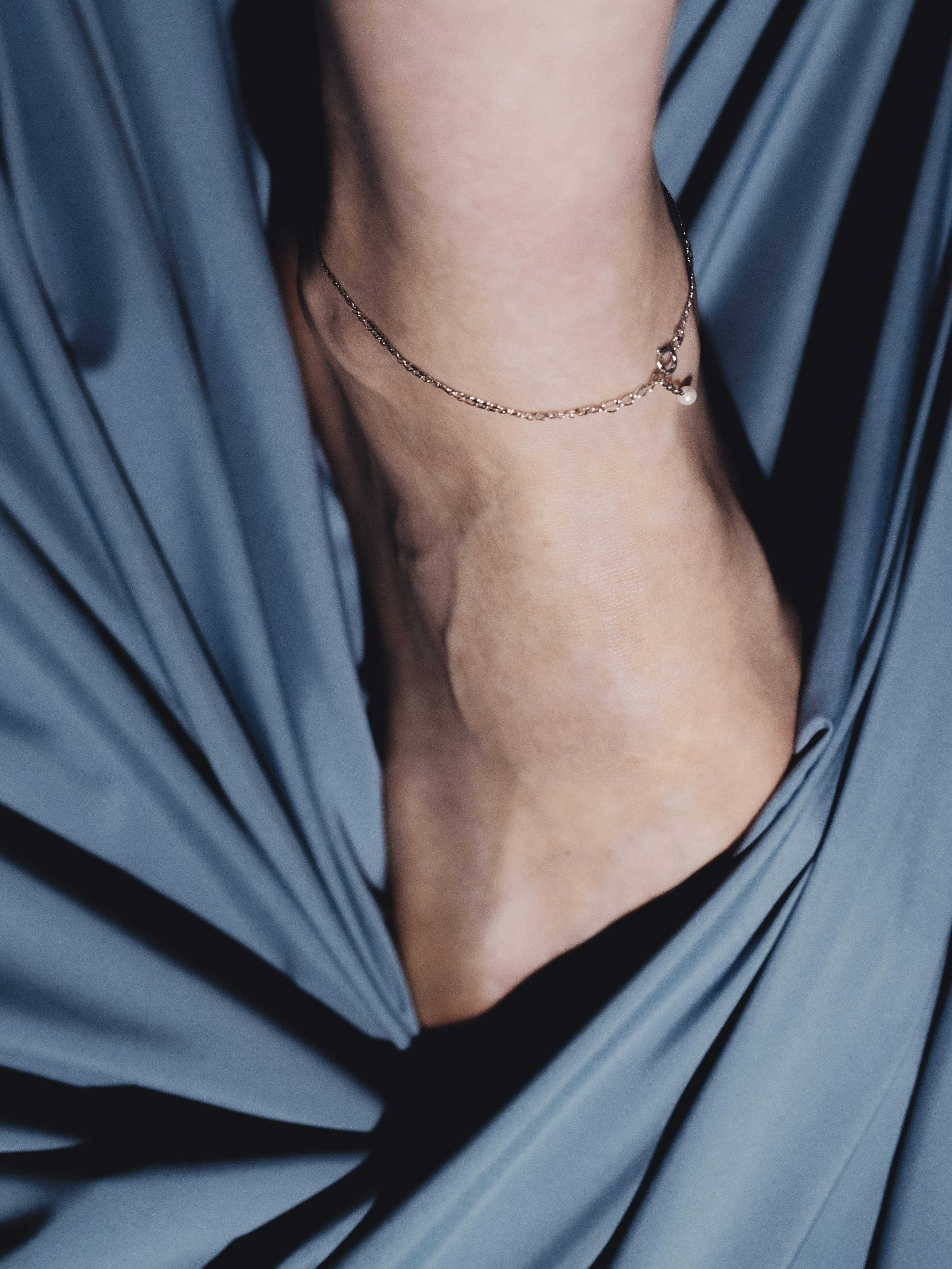 あたたかいシーズンの、スニーカーやスポーツサンダルなどを履いたカジュアルな足元に、繊細な煌めきで上品さをプラスしてほしいとの思いから生まれたアイテムです。