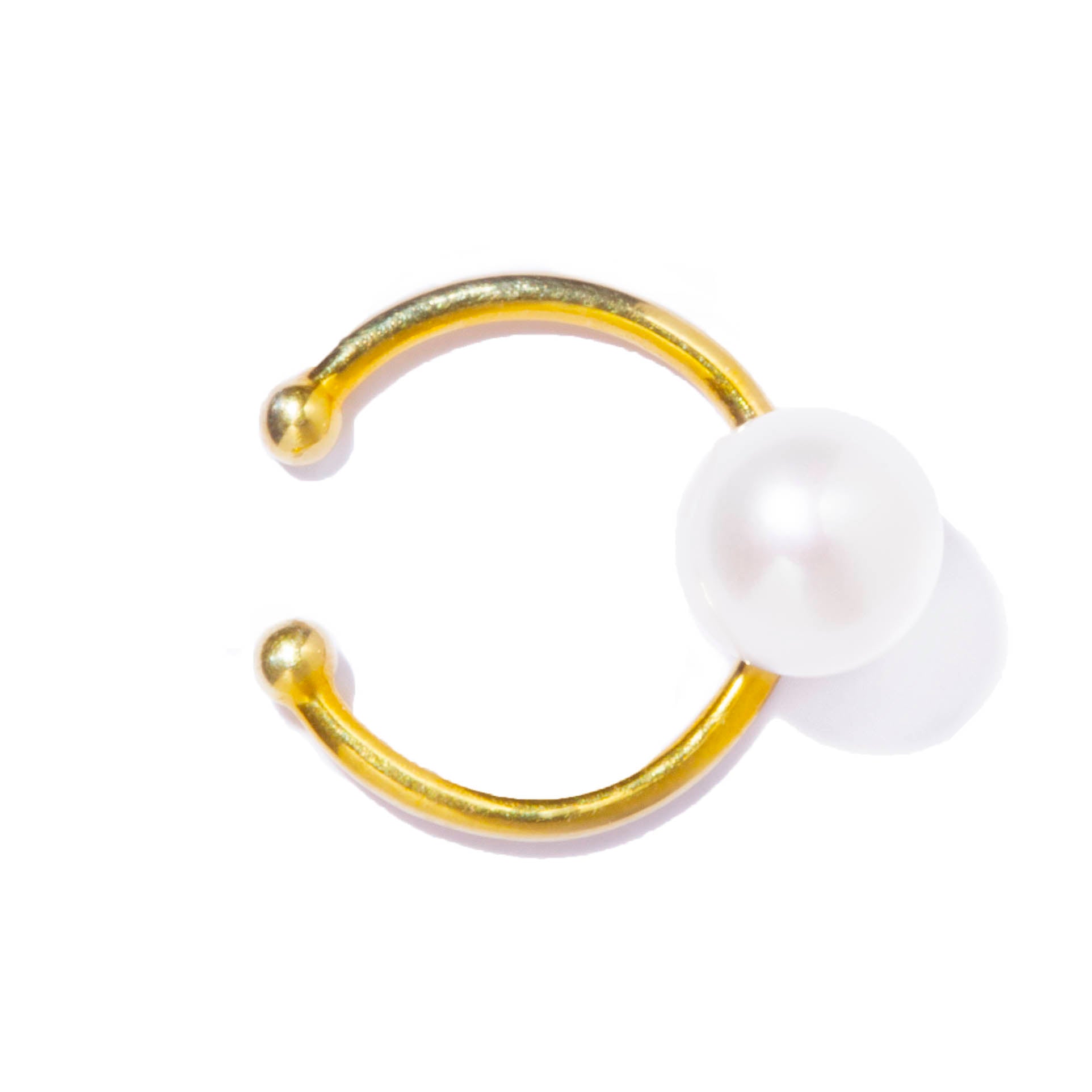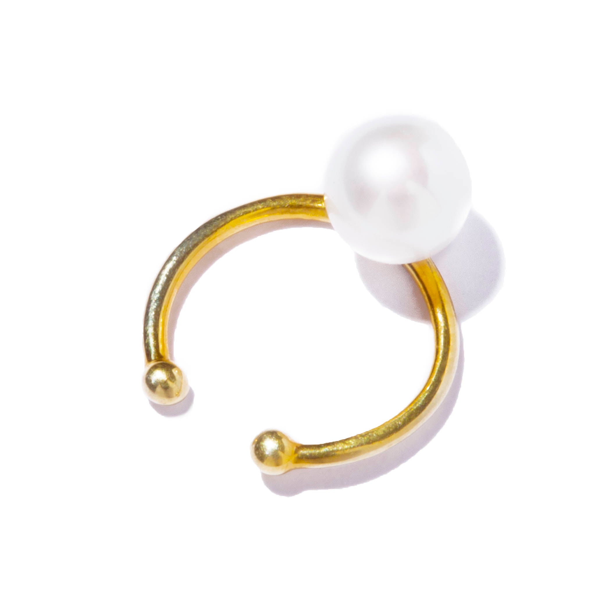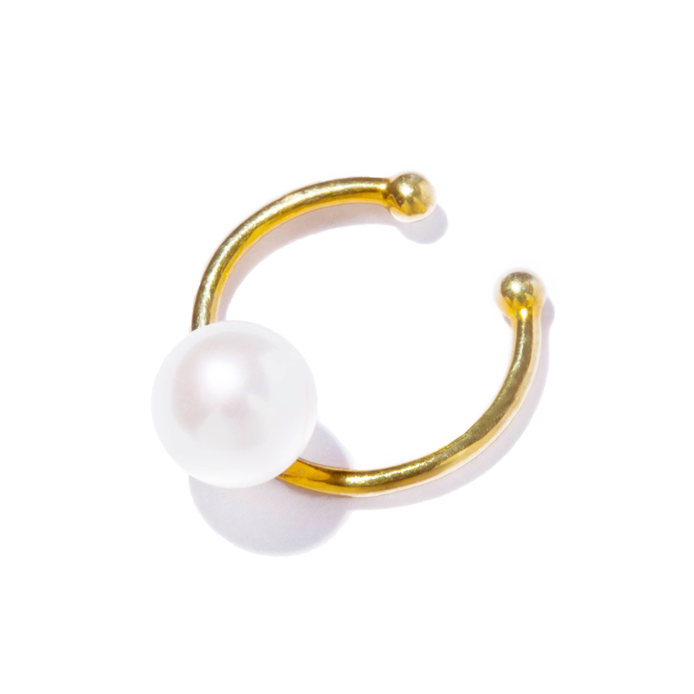軌道に浮かぶ惑星をパールに見立てた神秘的でアーティーなイヤカフ。