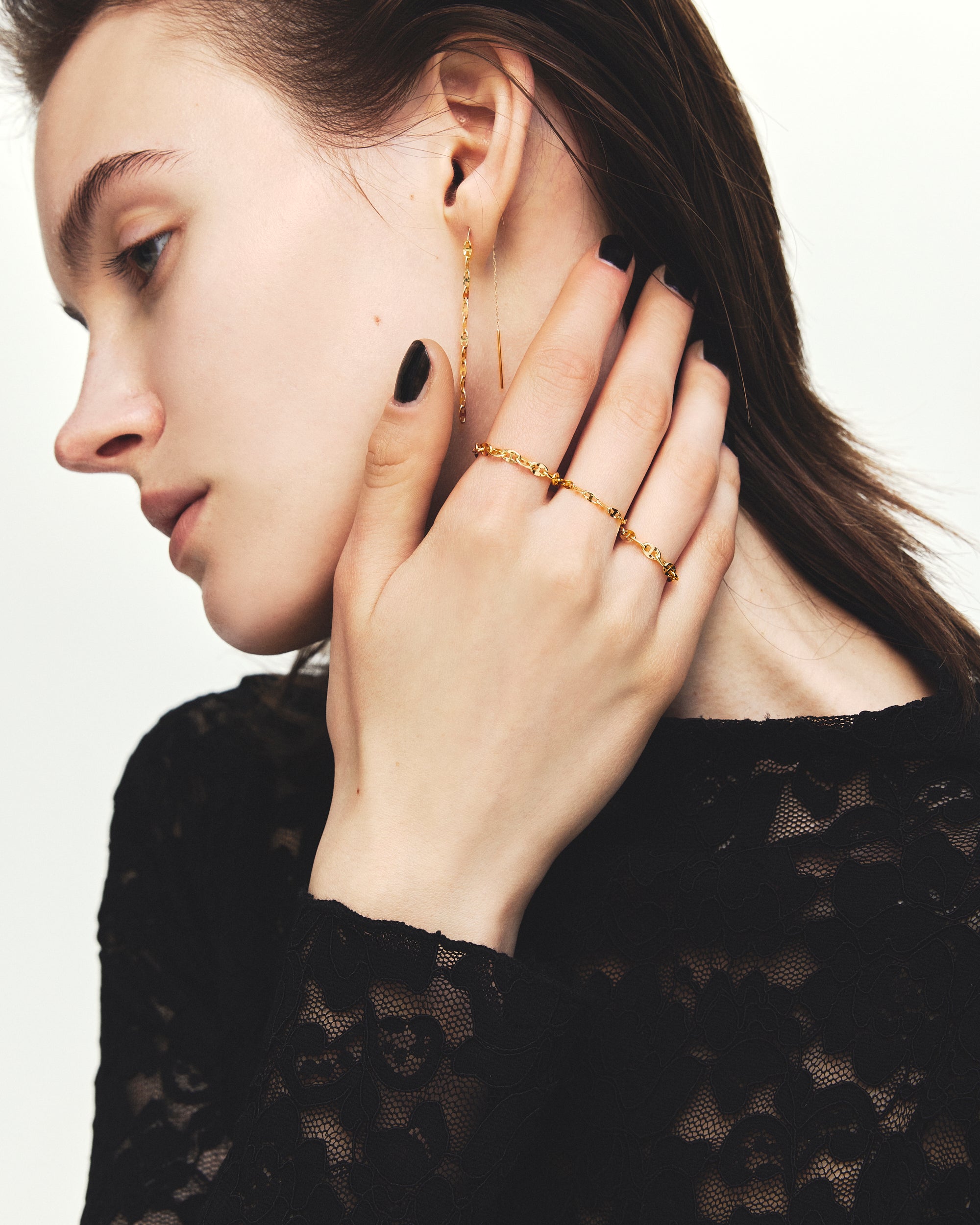 デザイン違いのS ringを組み合わせれば、上品さの中に遊び心が光る仕上がりに。