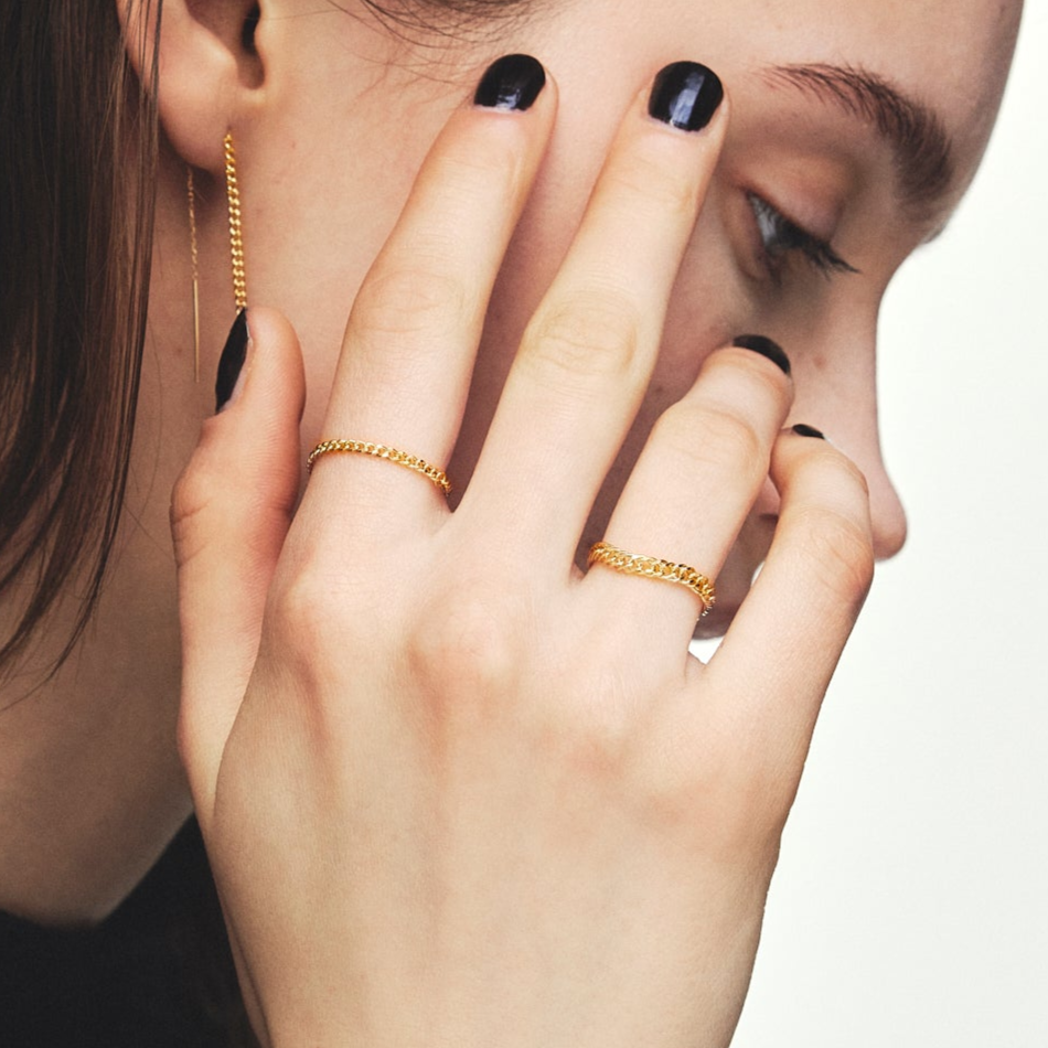 デザイン違いのS ringを組み合わせれば、上品さの中に遊び心が光る仕上がりに。