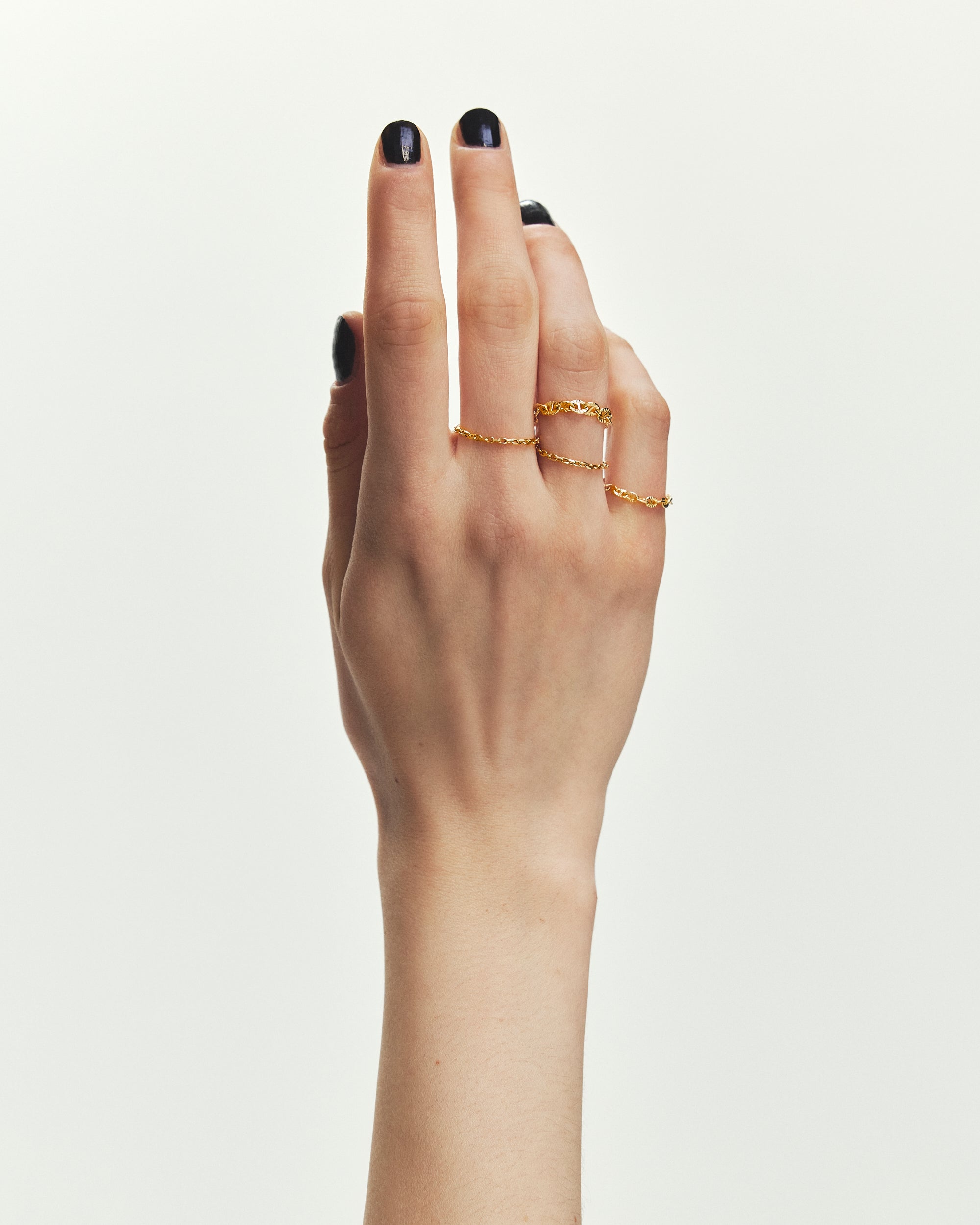デザイン違いのS ringを組み合わせれば、上品さの中に遊び心が光る仕上がりに。