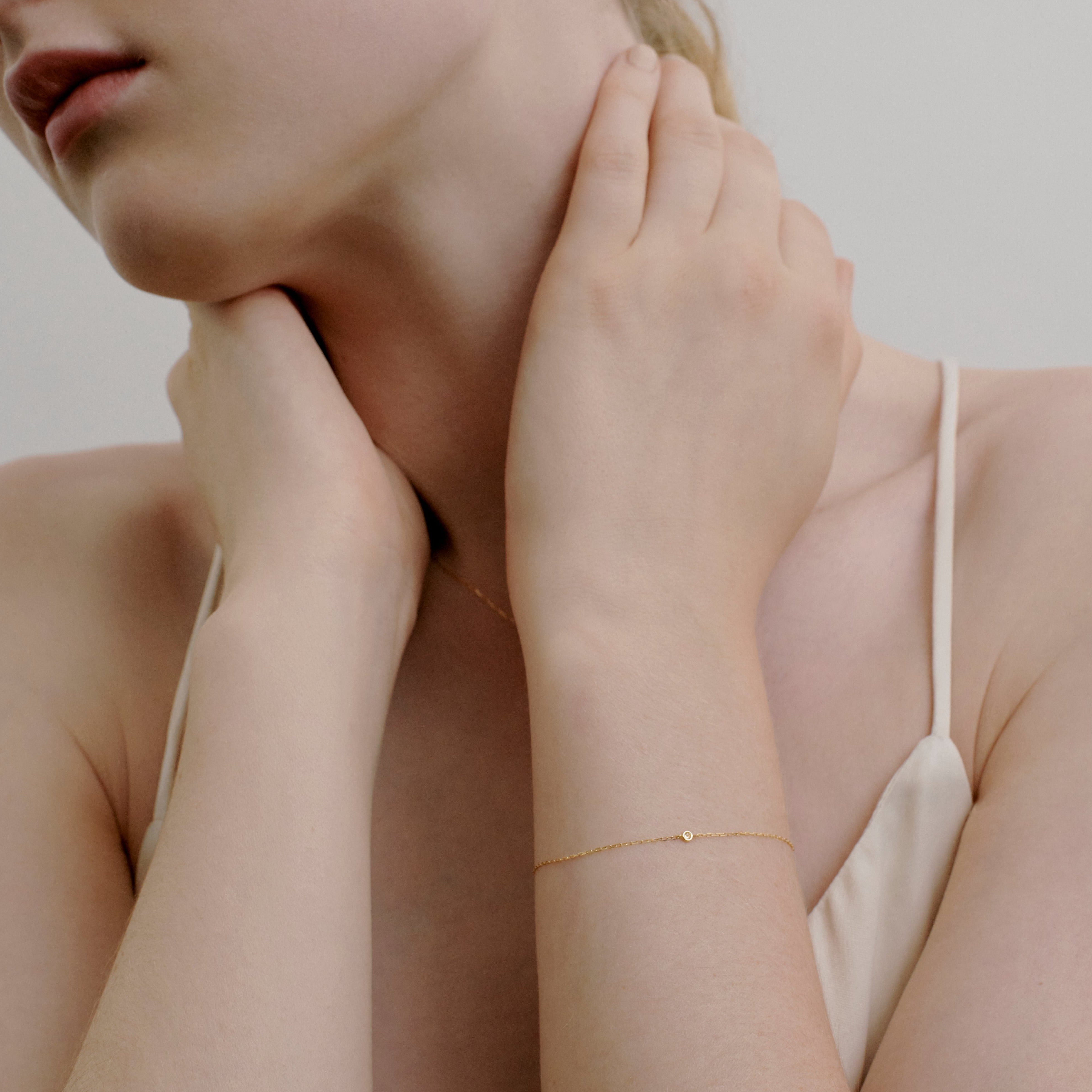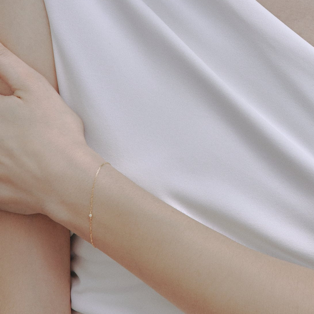 さりげなく輝く存在感は日常を共にするジュエリーにふさわしいブレスレットです。