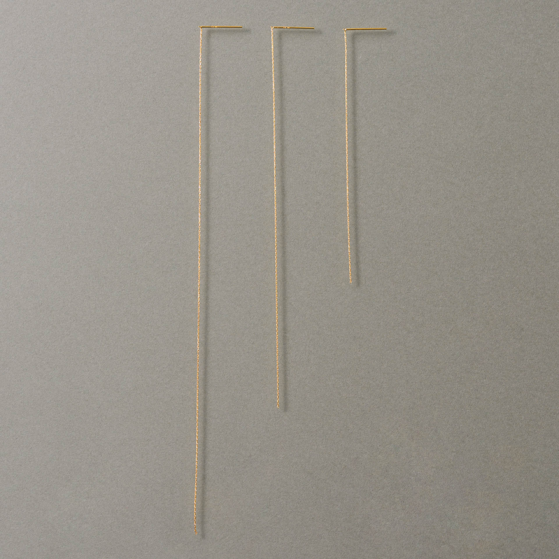 全長15cm~20cmのロングシルエットは、2つのピアスホールに通すことも可能。