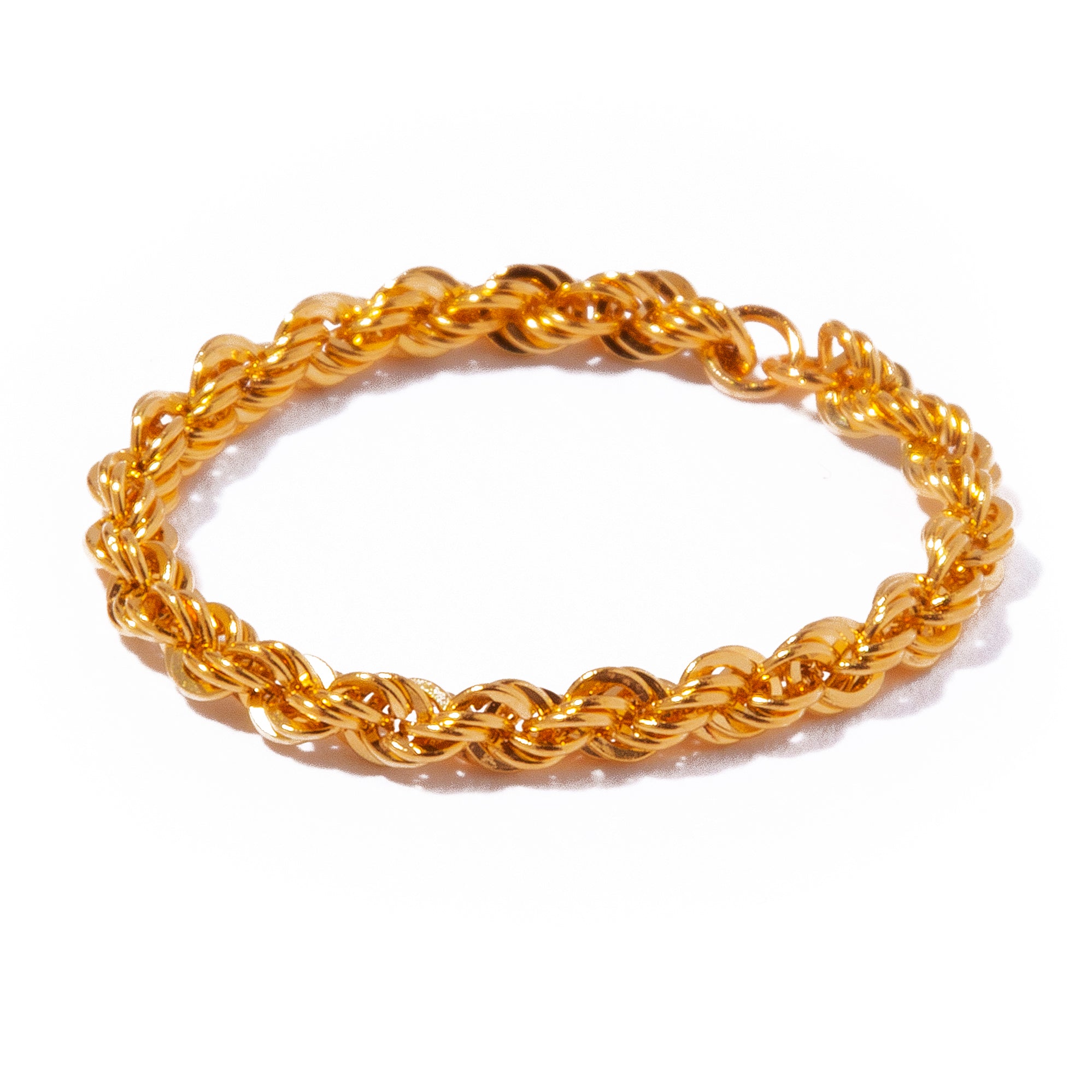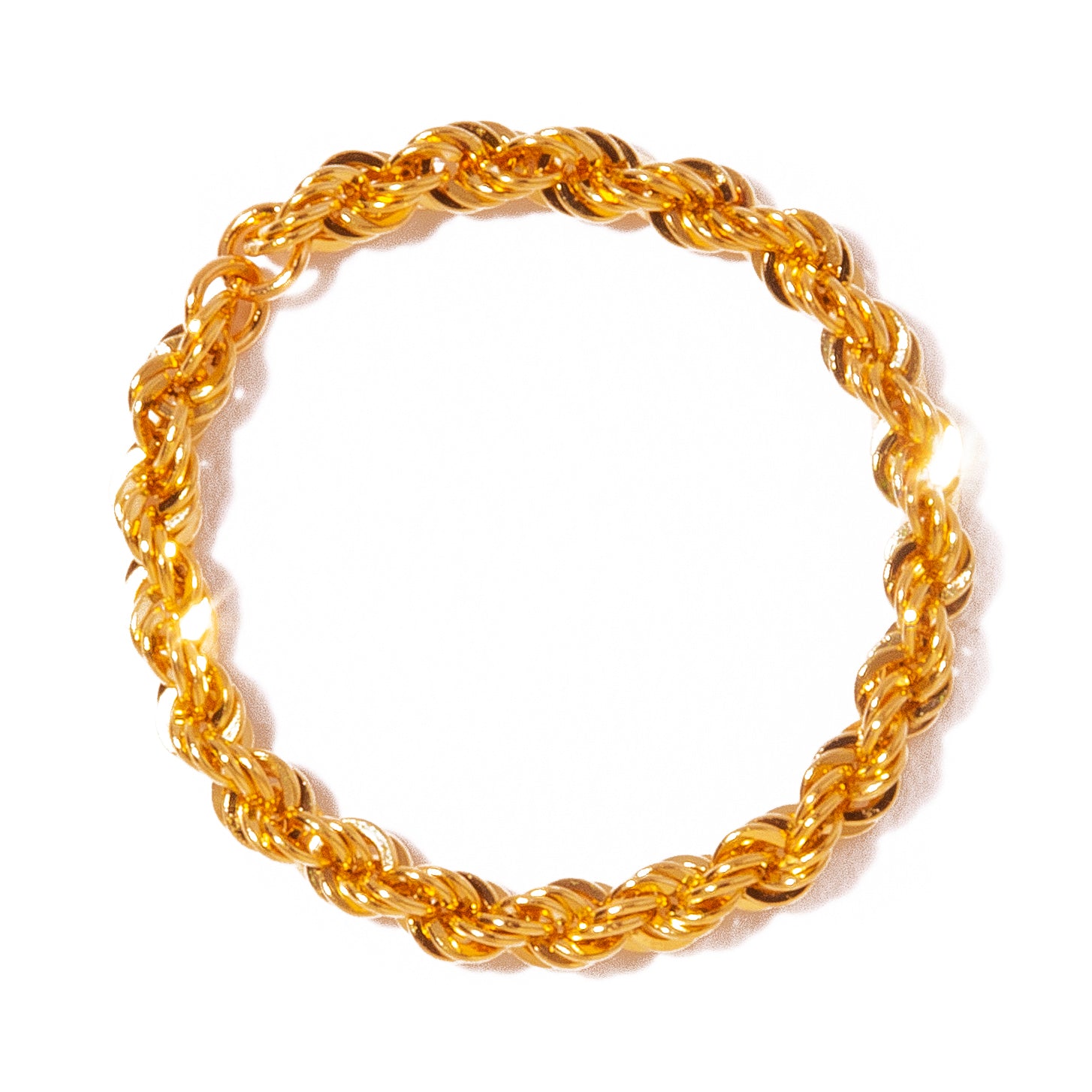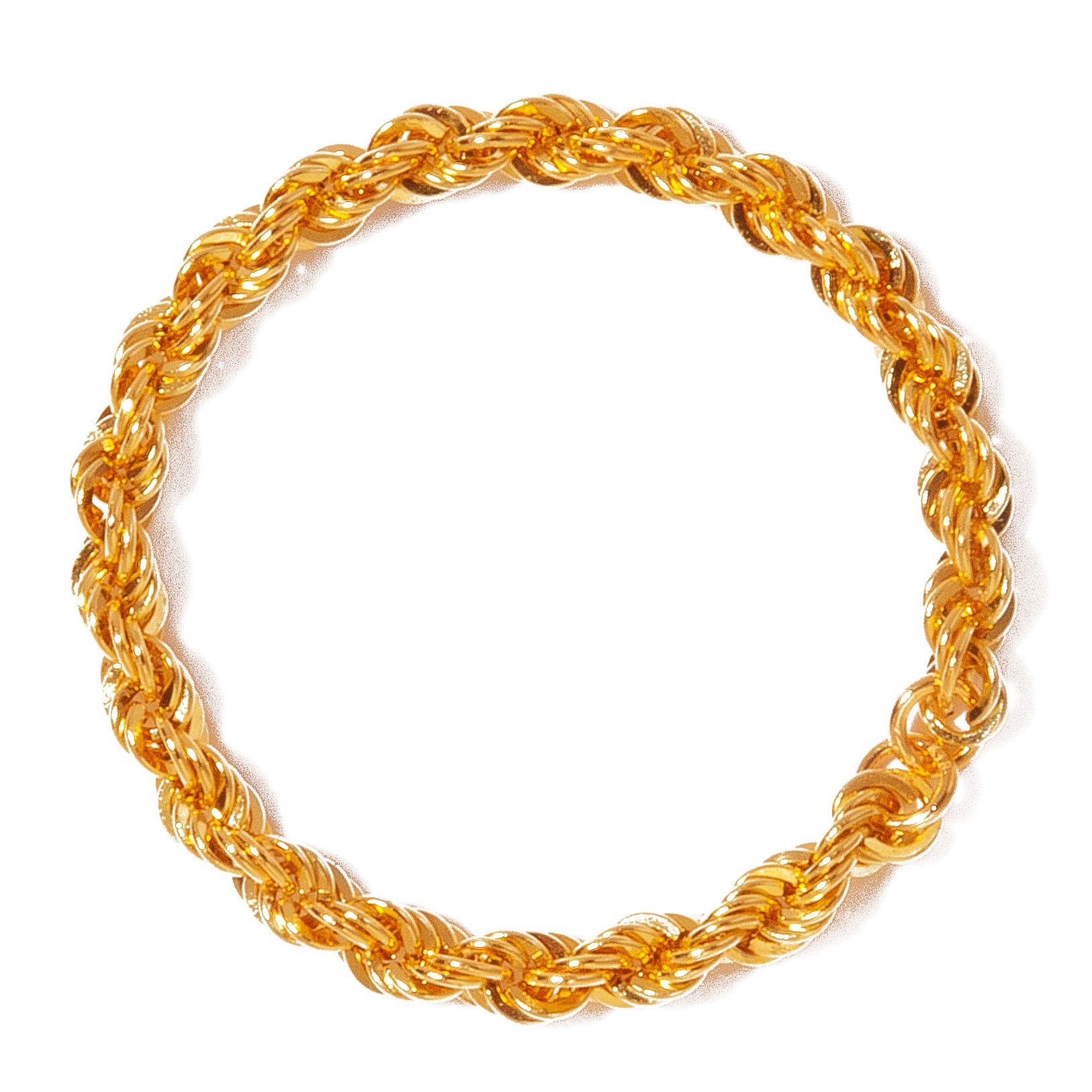 複雑にチェーンが絡み合ったデザインは、力強く輝くイエローゴールドの色味と相まって、エネルギッシュでリュクスな印象。