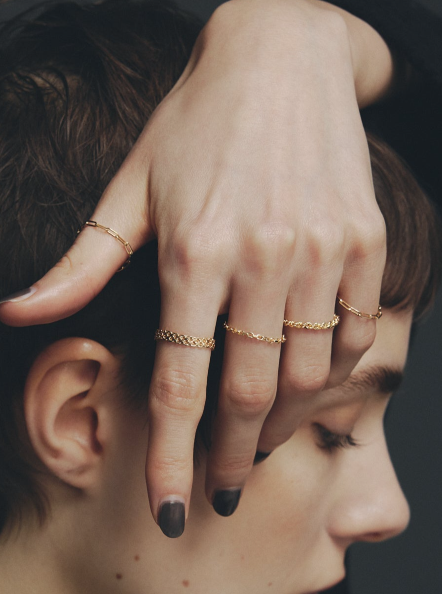 K18ならではの上質な輝きを楽しめるチェーンリング。