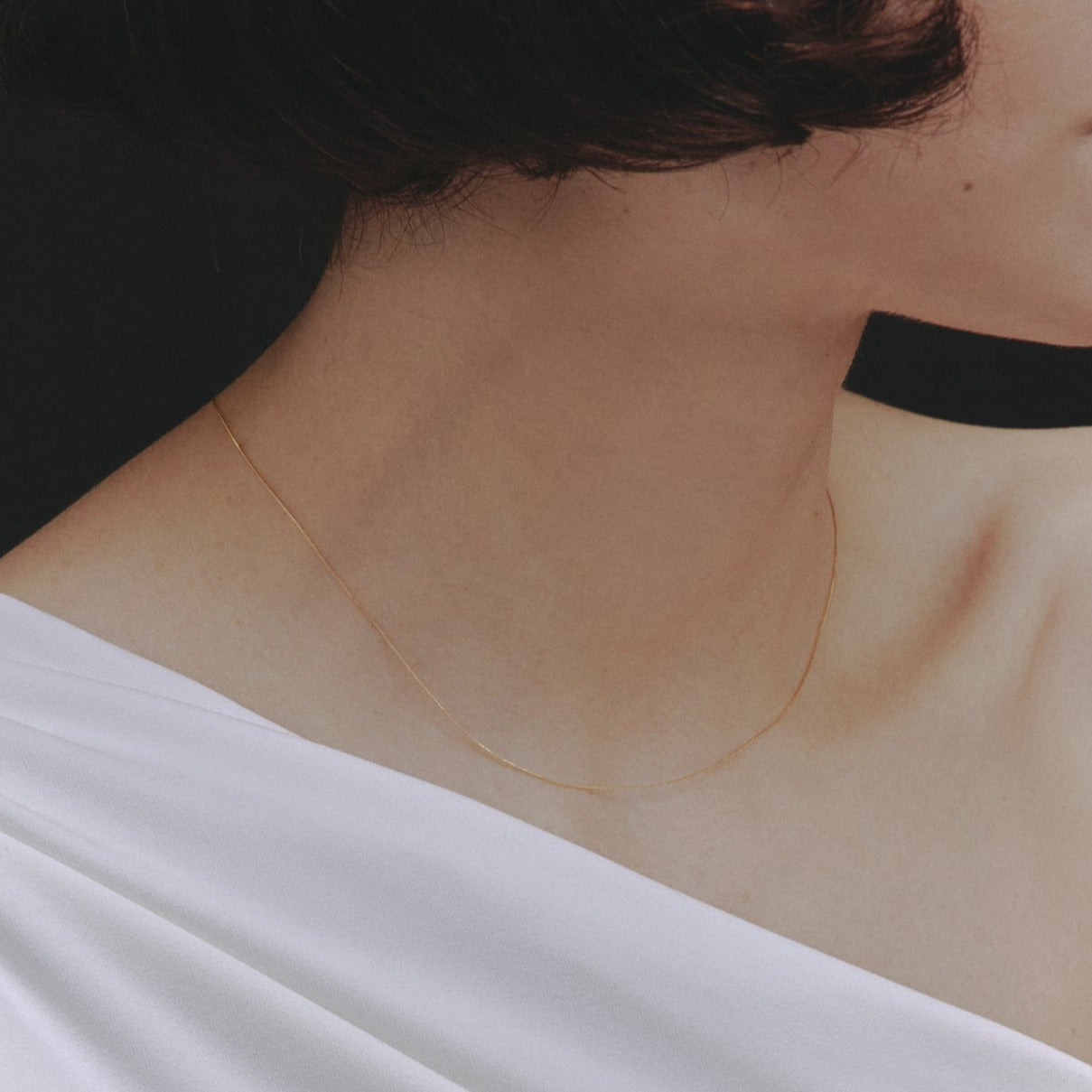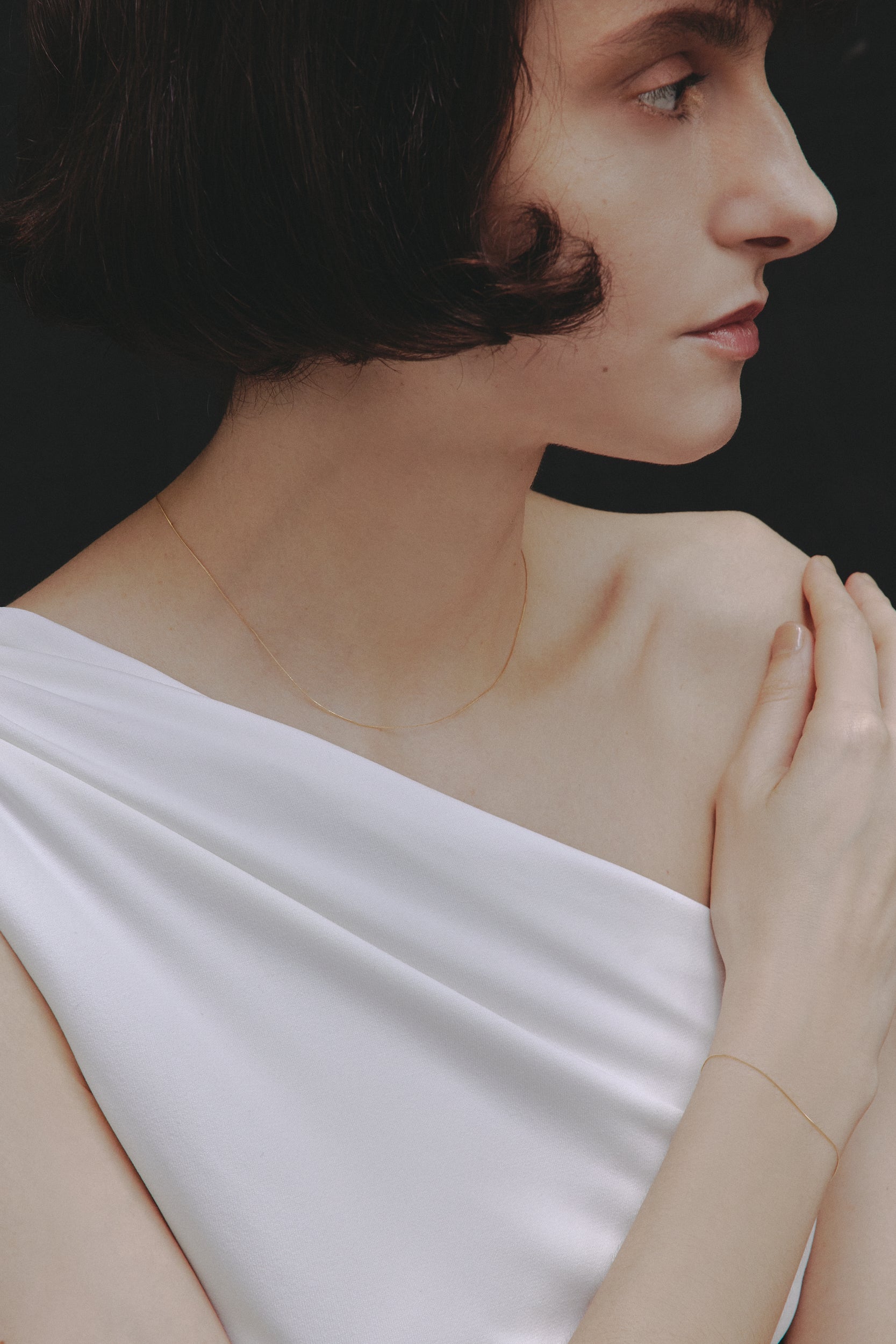 繊細な一筋のK18の輝きは、絹を纏っているかのように、しなやかで美しいシルエット。