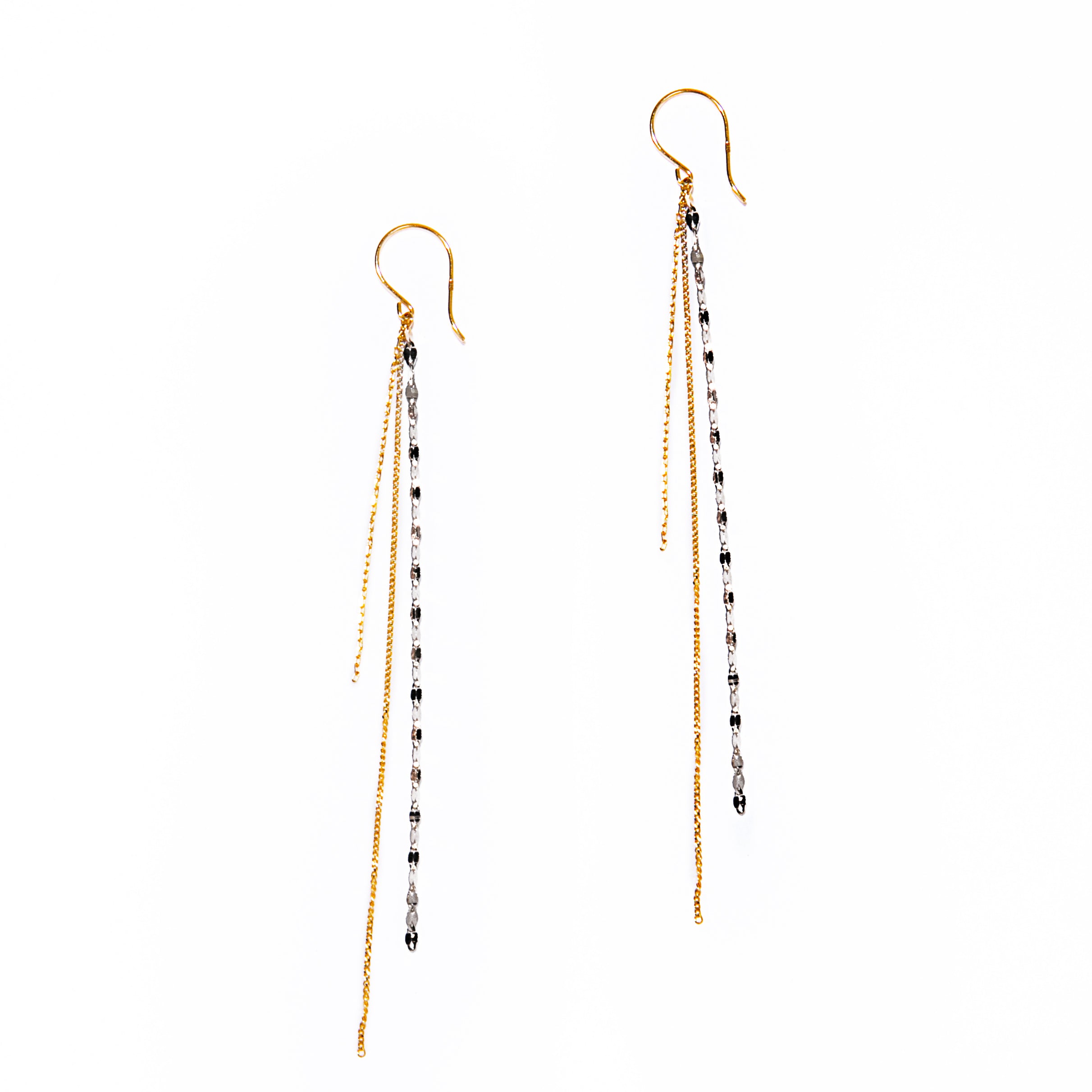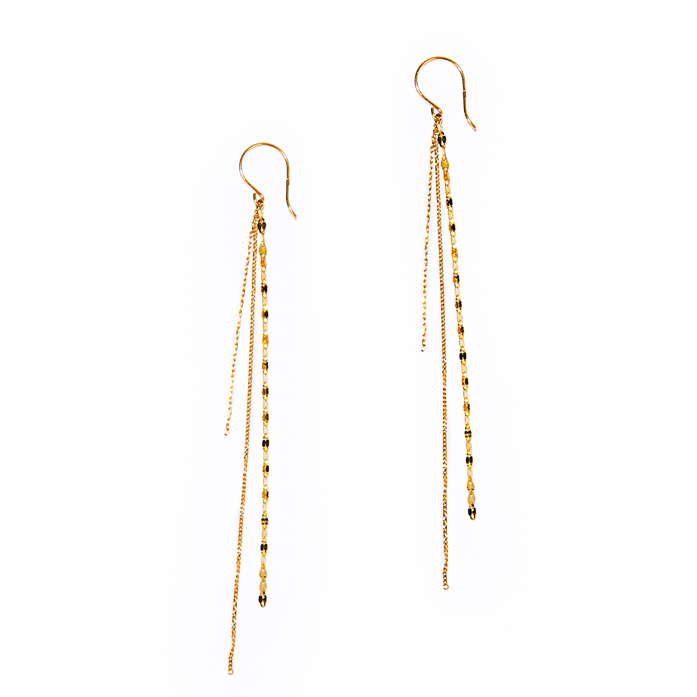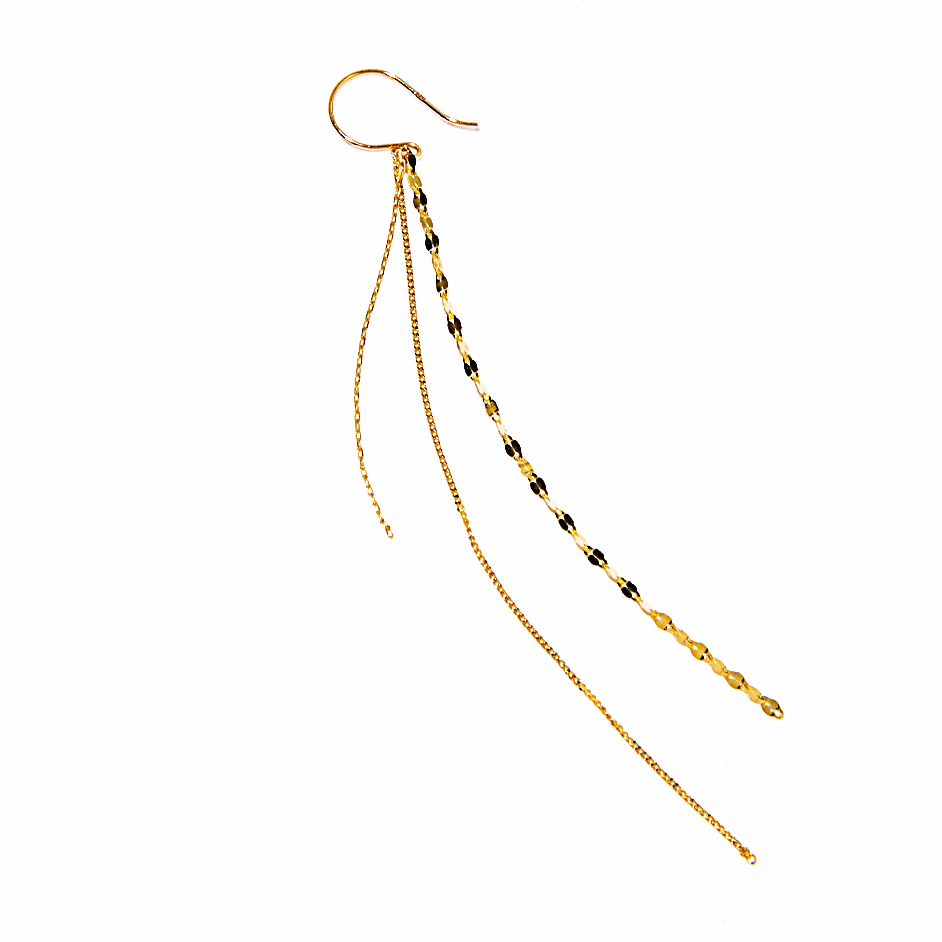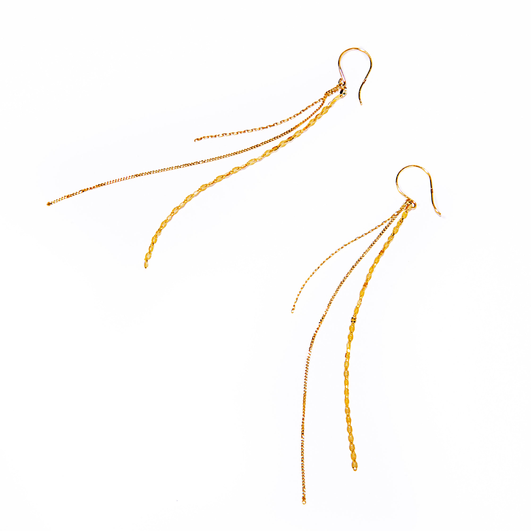 太陽の光線をイメージした3連チェーンピアス。