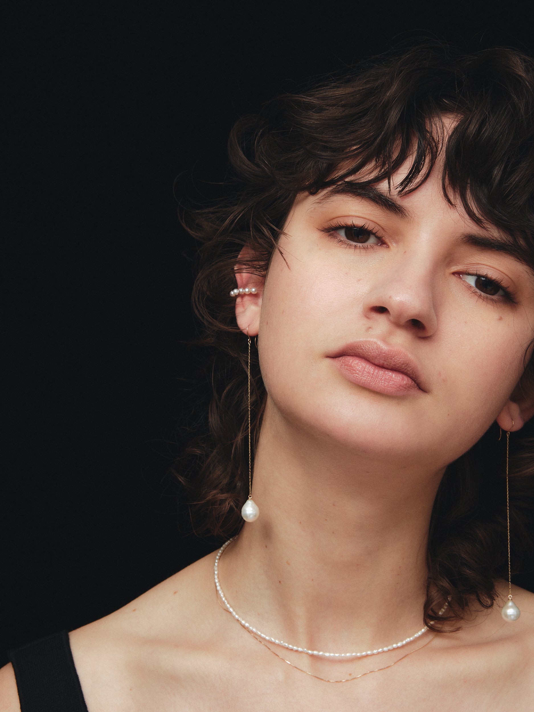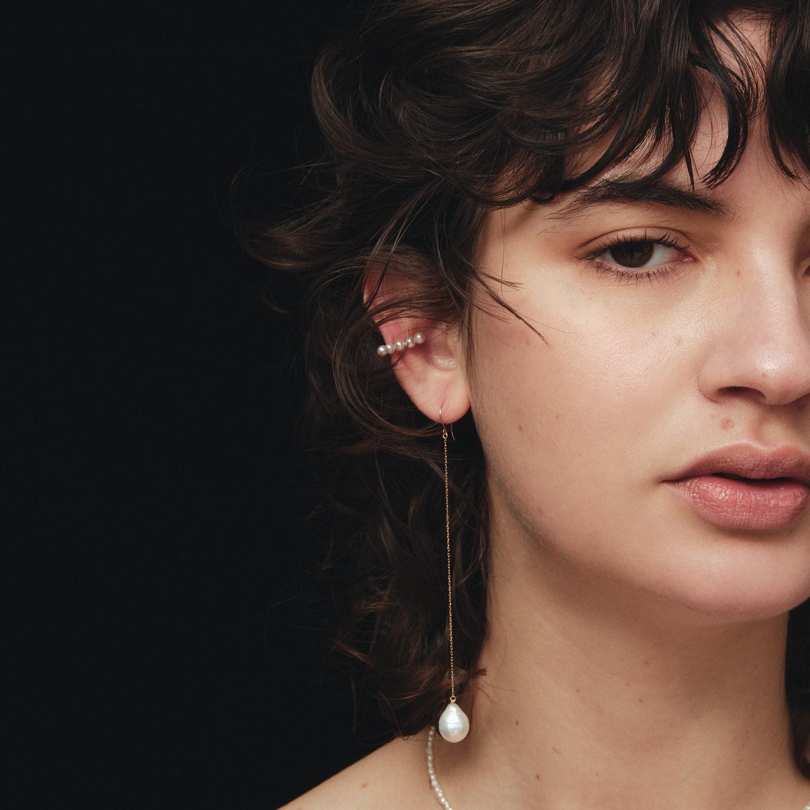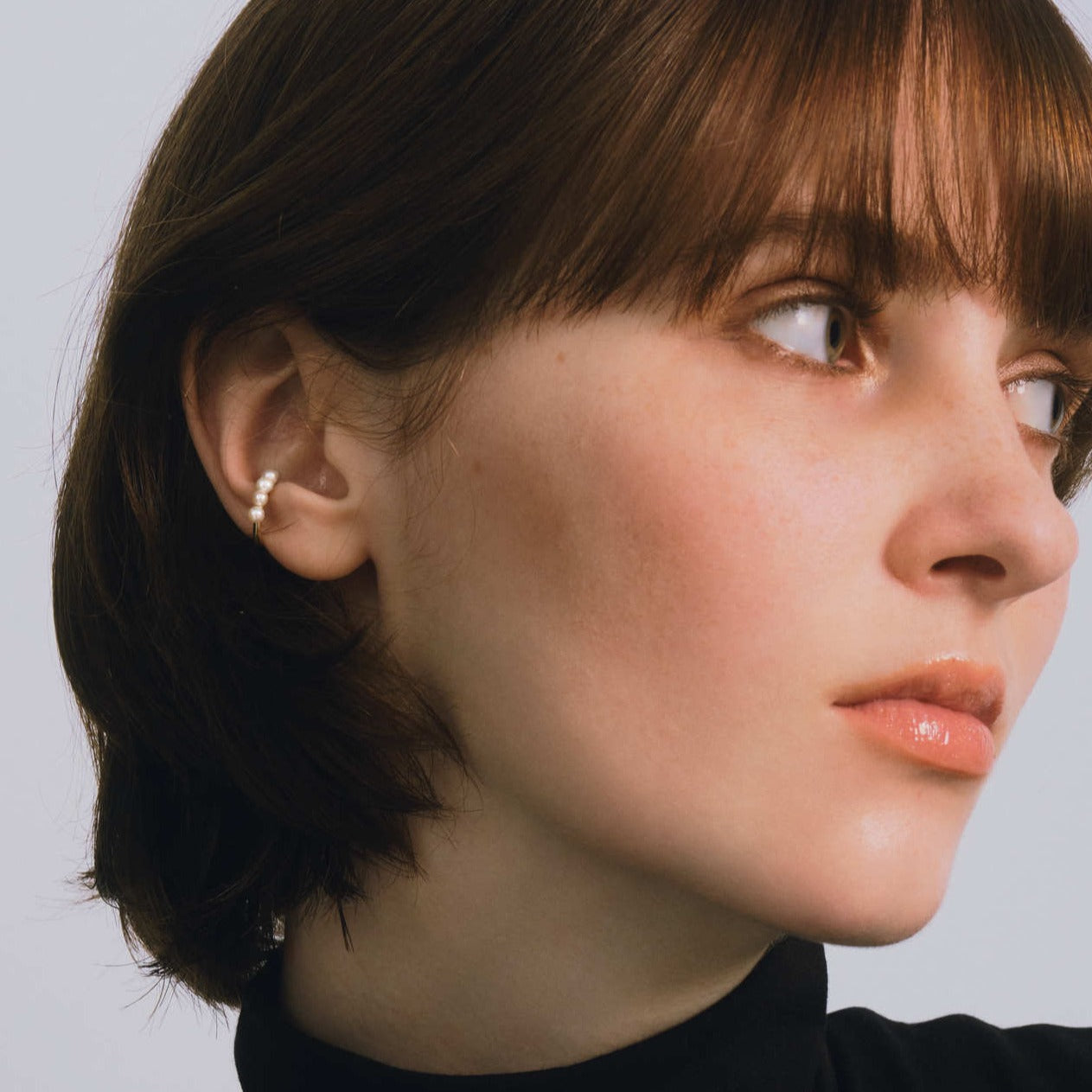 小粒のキャビアパールを連ねたユニークなイヤーカフ。