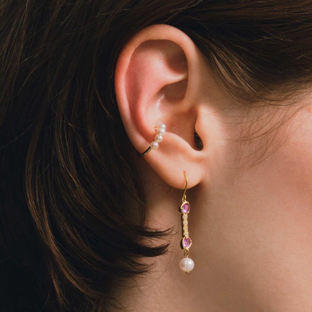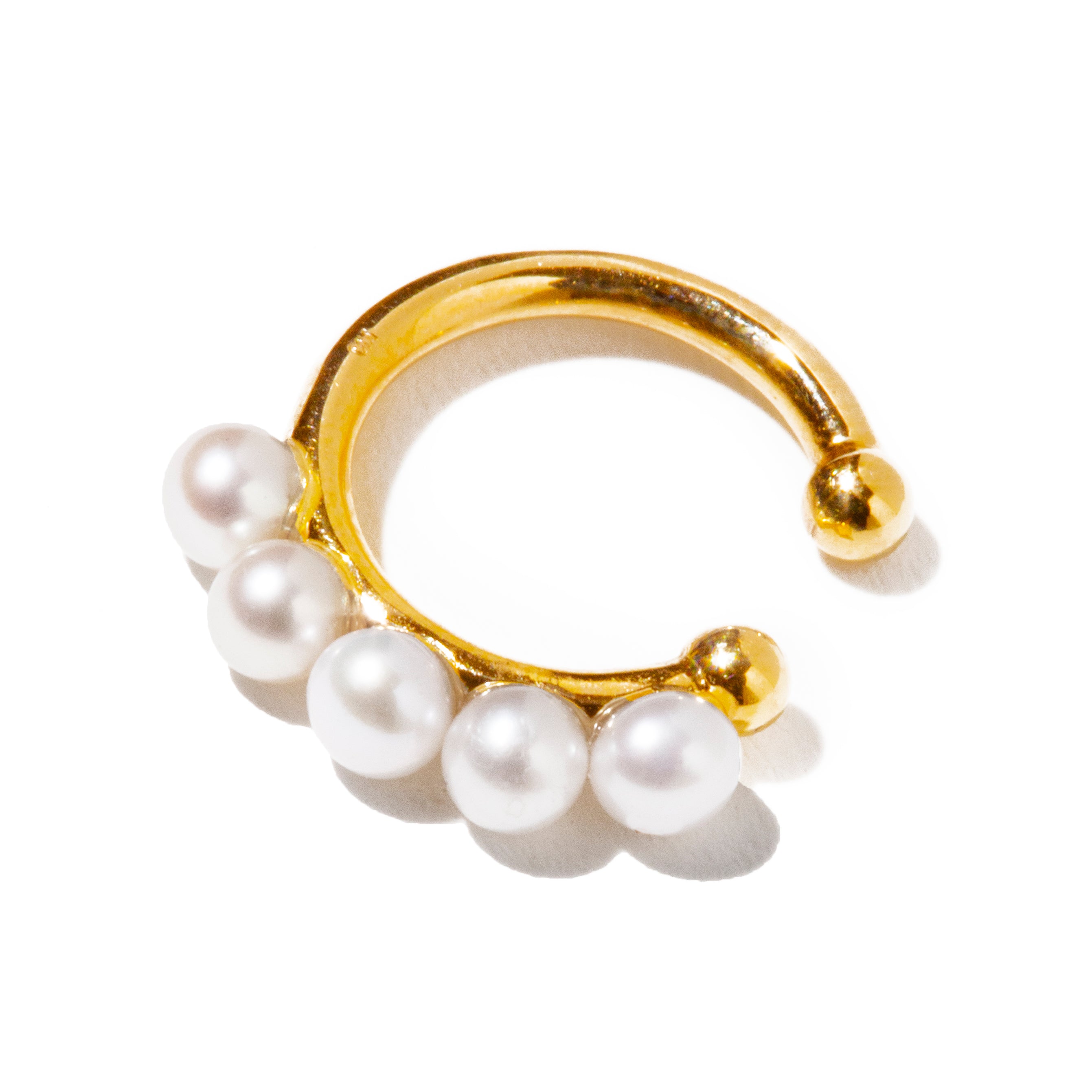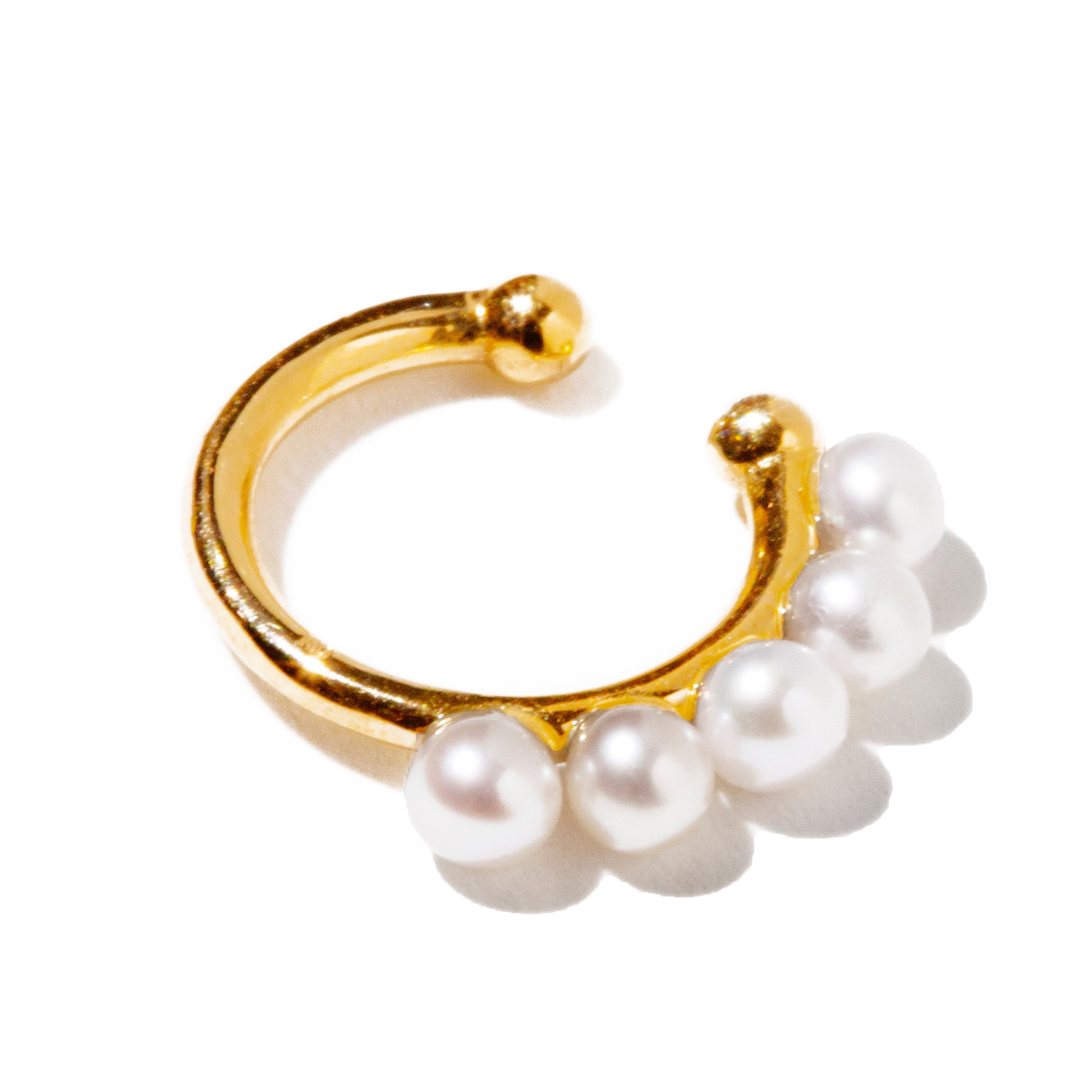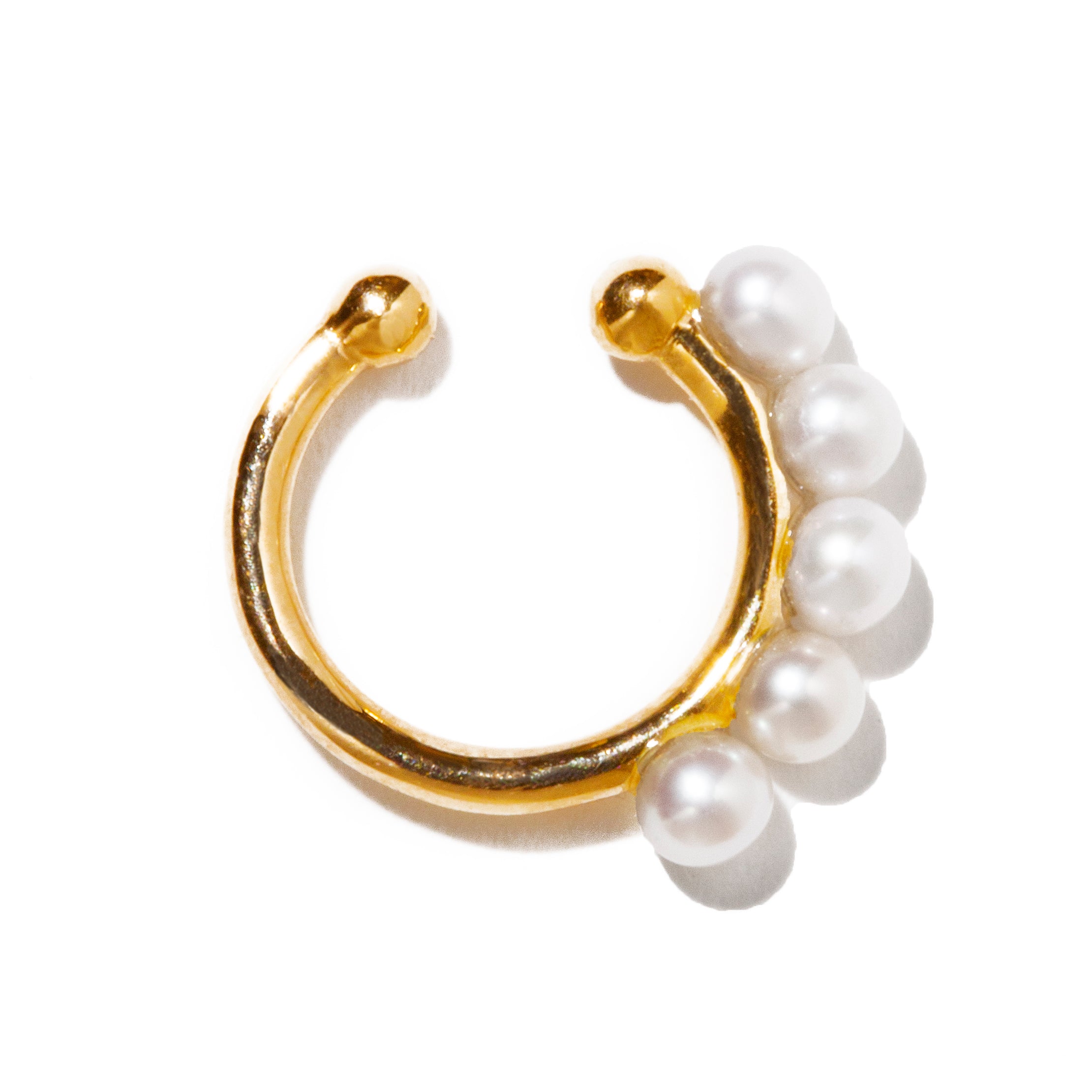 小粒のキャビアパールを連ねたユニークなイヤーカフ。