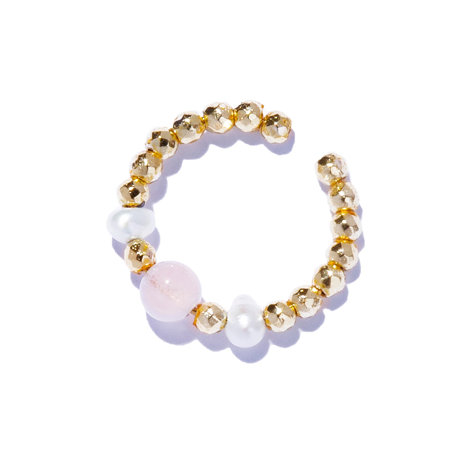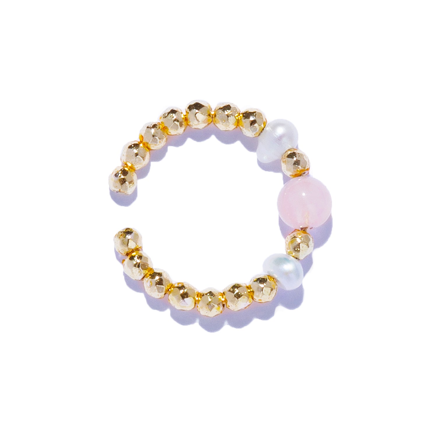 着用すると耳の側面にローズクォーツが浮かぶように乗り、エレガントな色気を上乗せしてくれます。