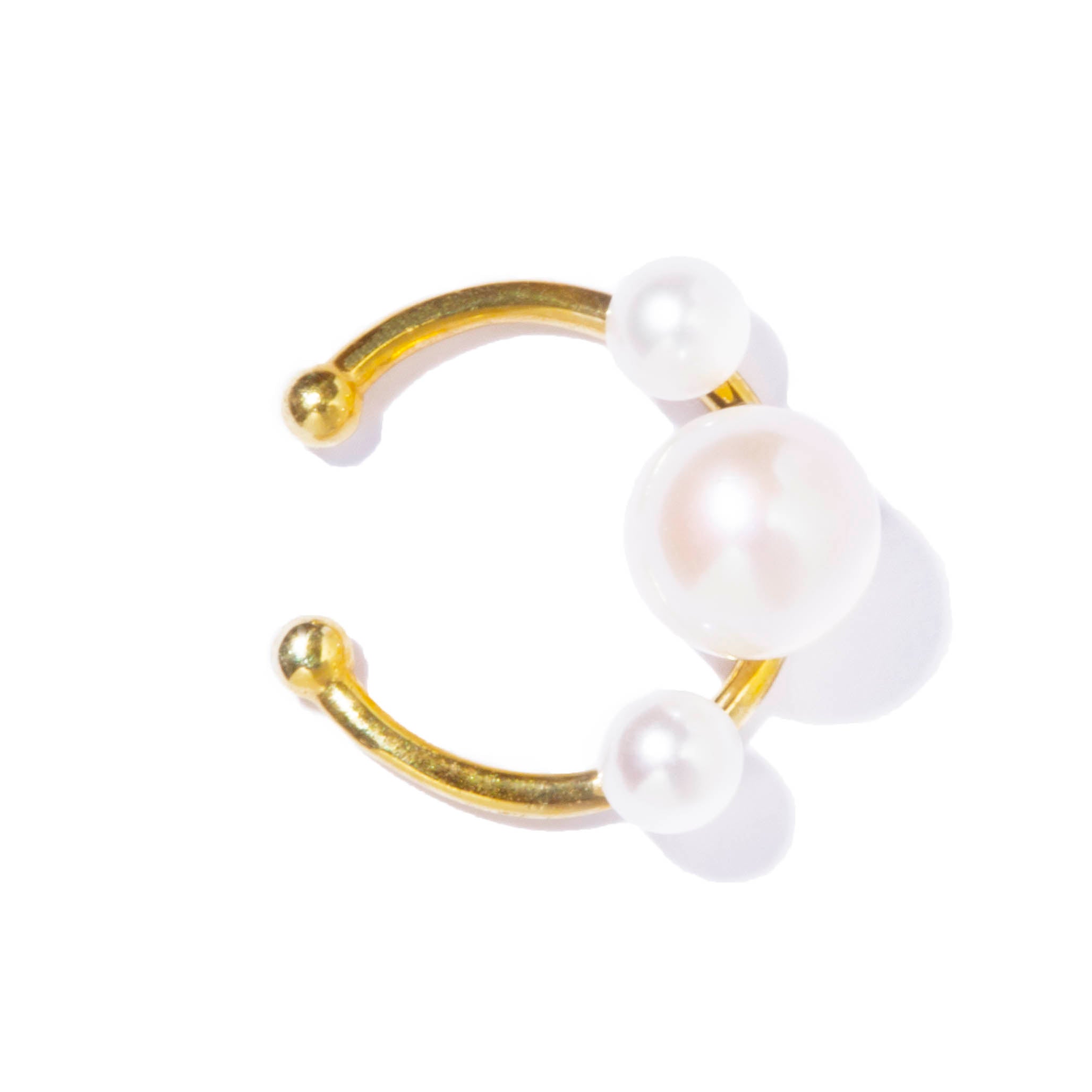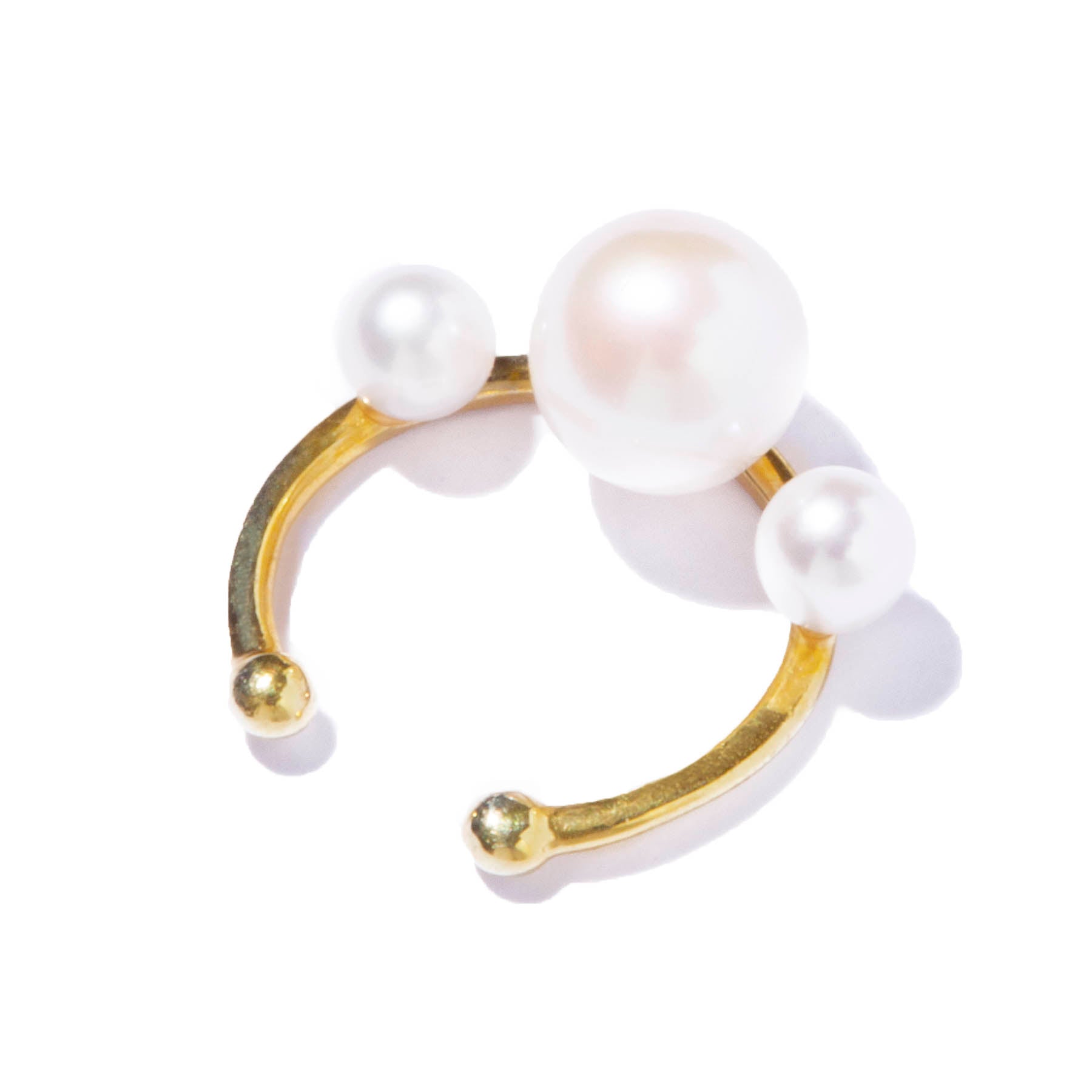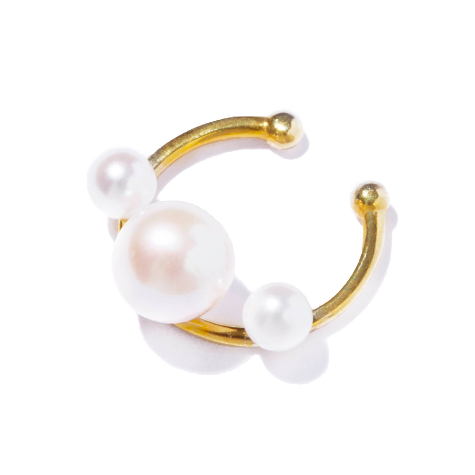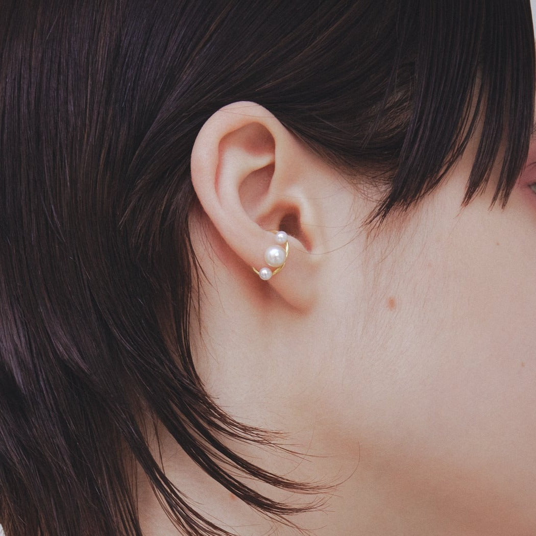 軌道に浮かぶ惑星をパールに見立てた神秘的なバランスが光るアーティーなイヤカフ。