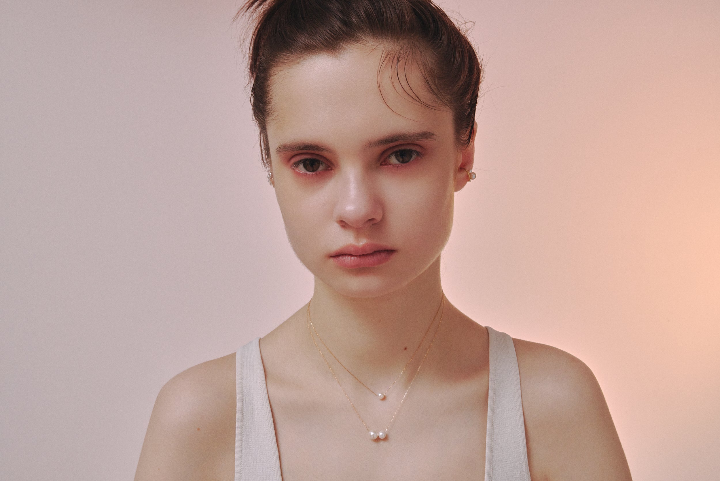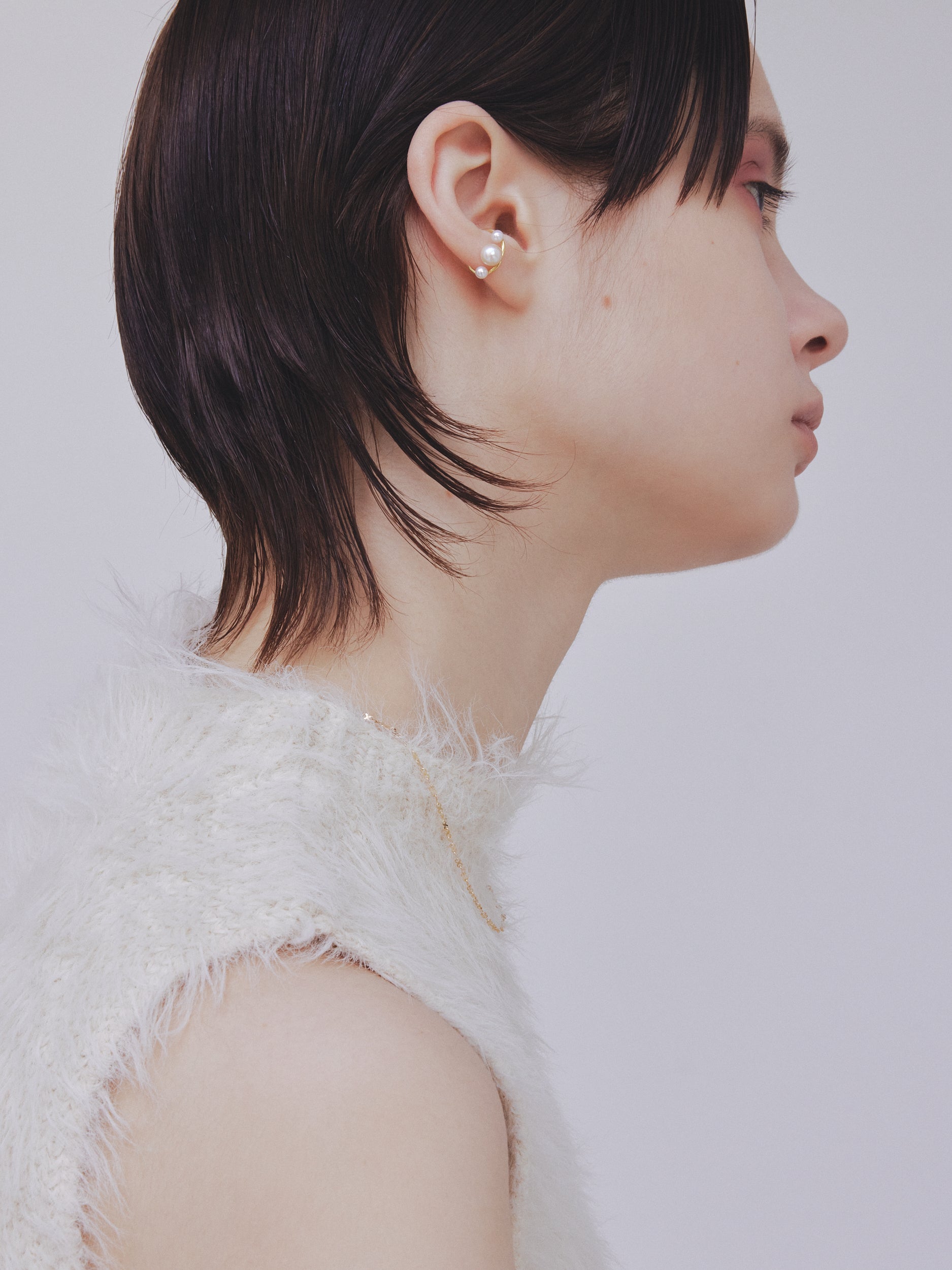 見る角度によって浮かび上がるように見えるパールは、耳元のレイヤードに洗練感のある表情を生み出します。