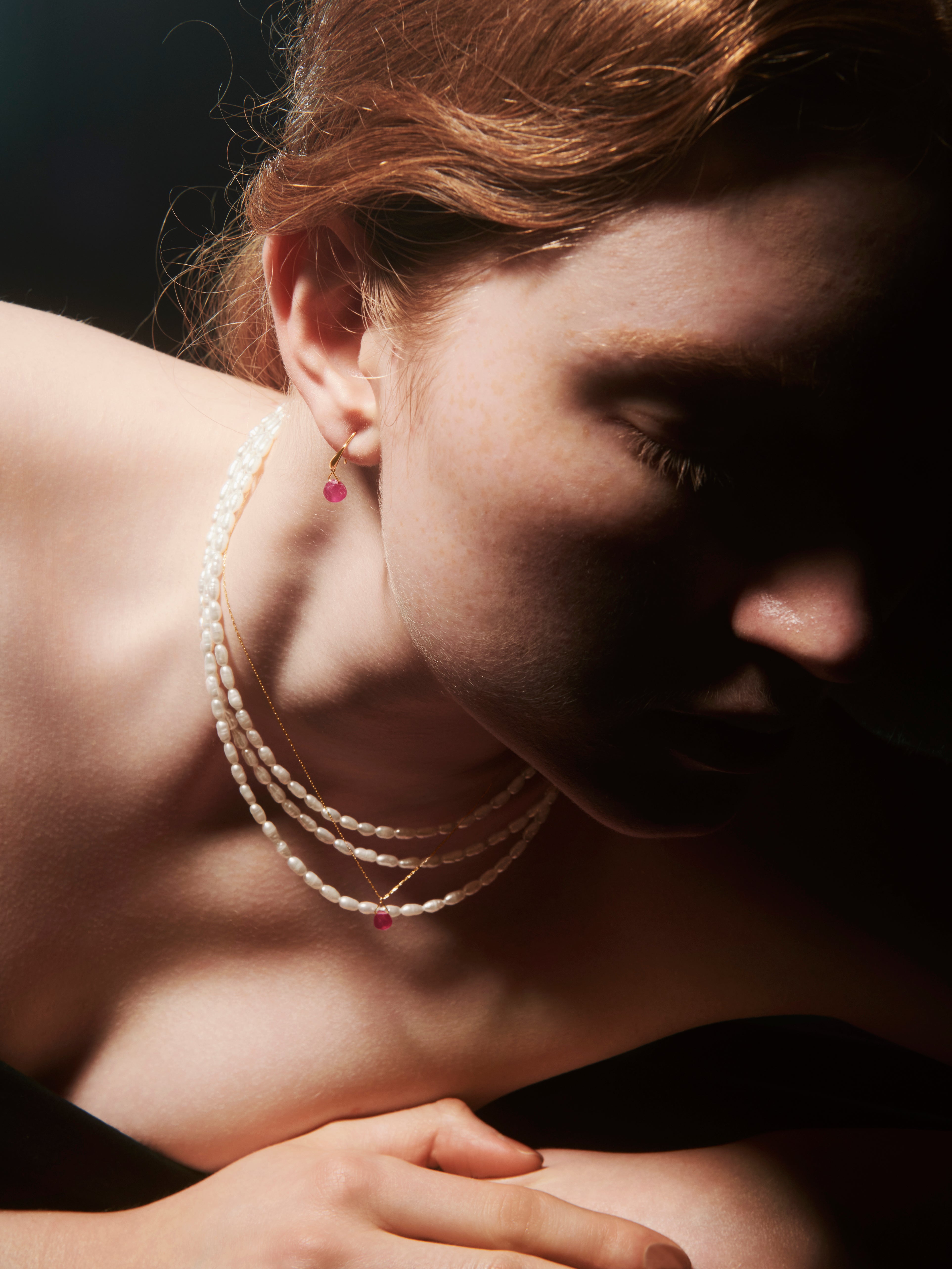 気品に満ちた鮮やかな赤色は、ルビーならでは。顔周りに情緒的な魅力を宿します。