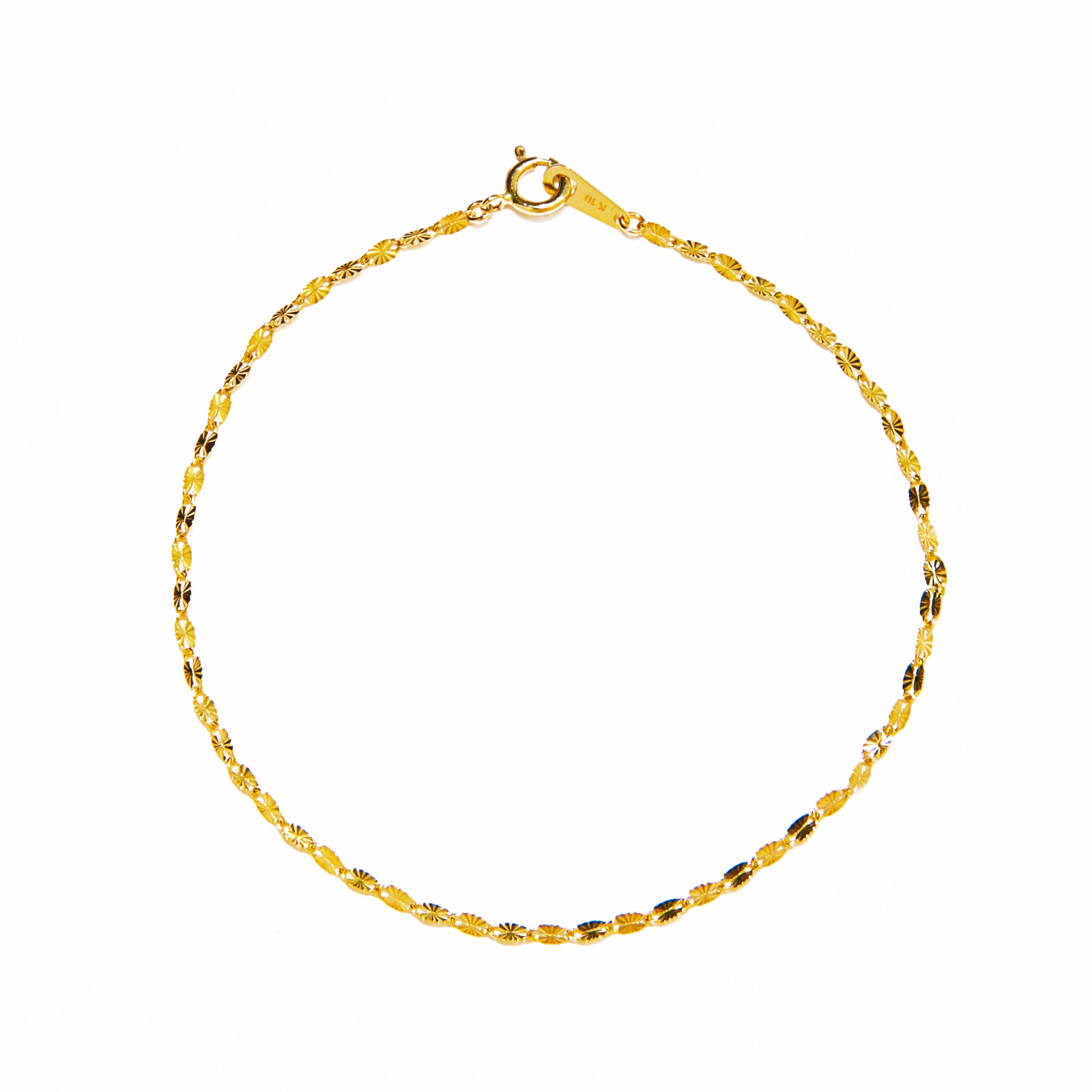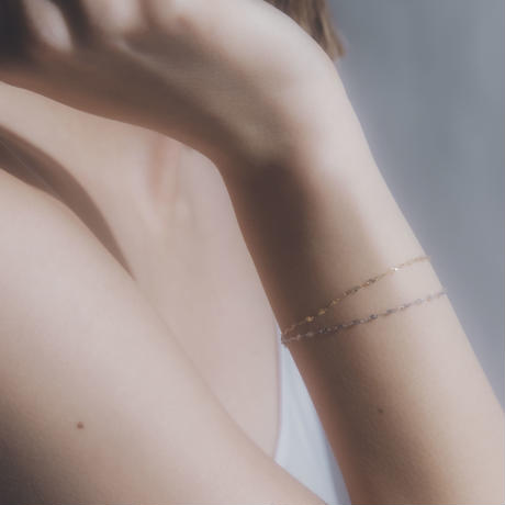 光を受けて輝くよう計算されたカッティングが美しいチェーンを使用したブレスレット。