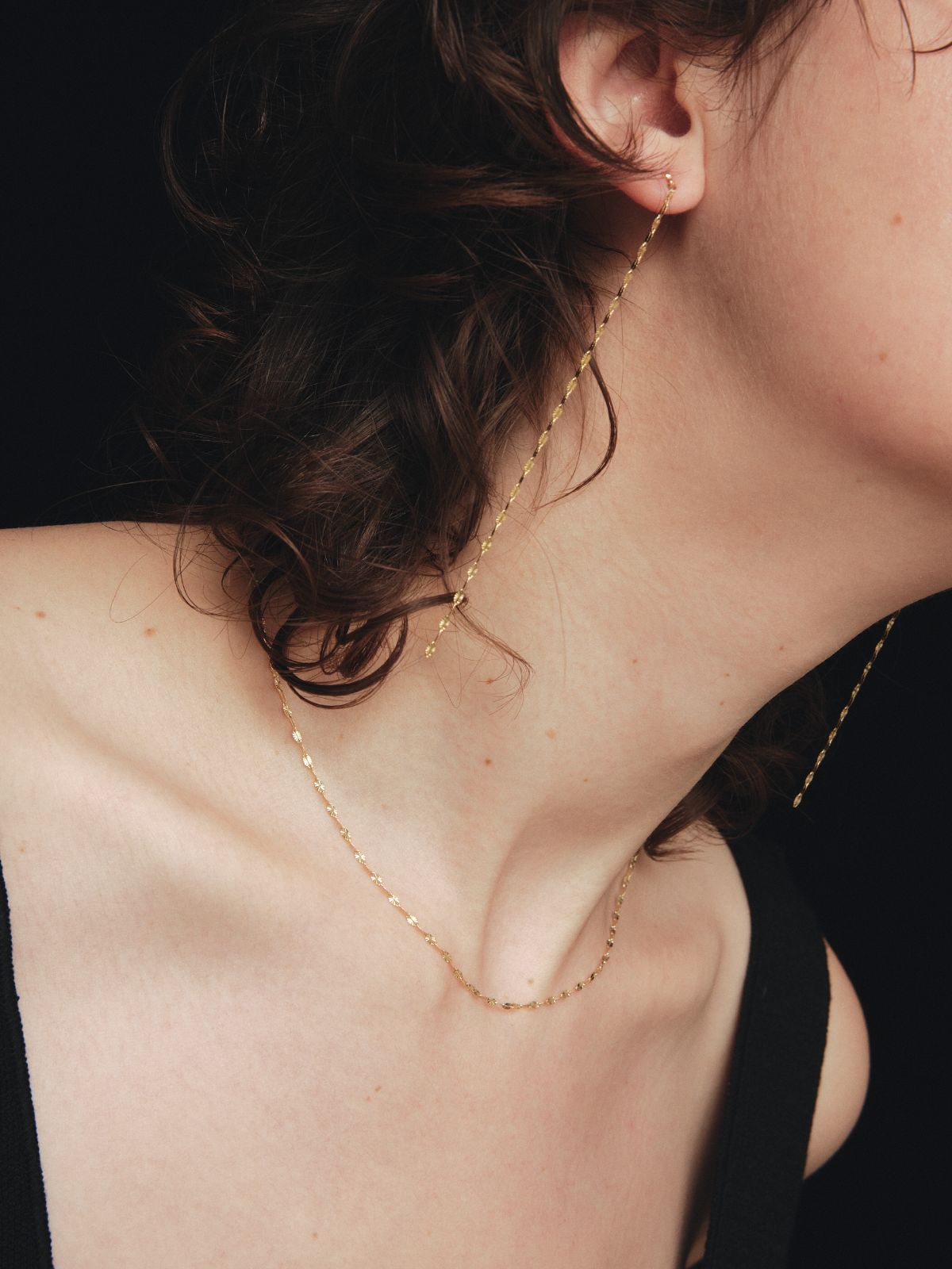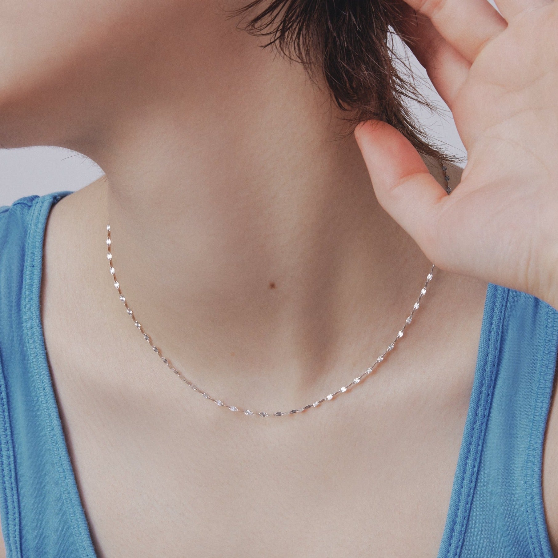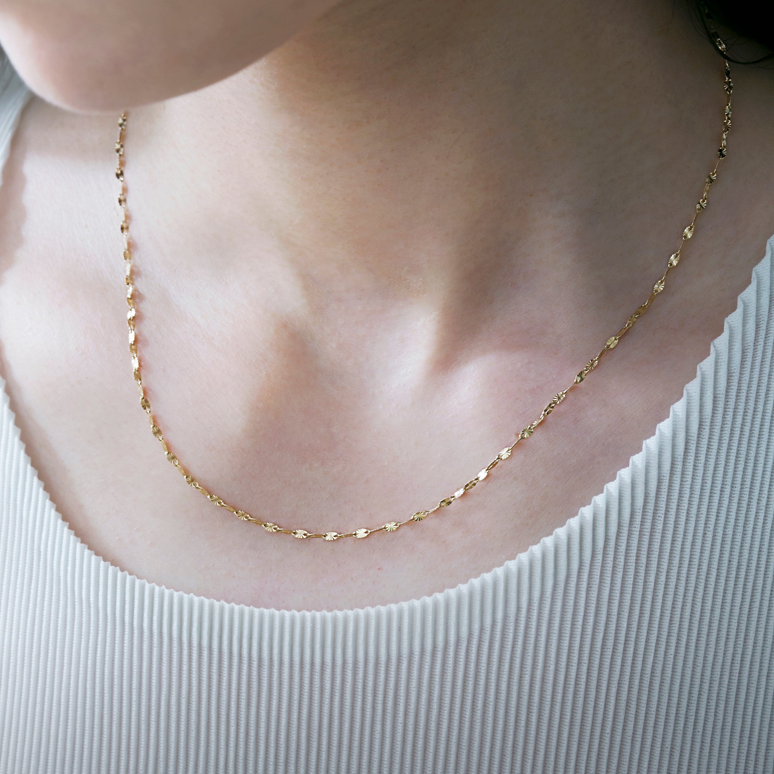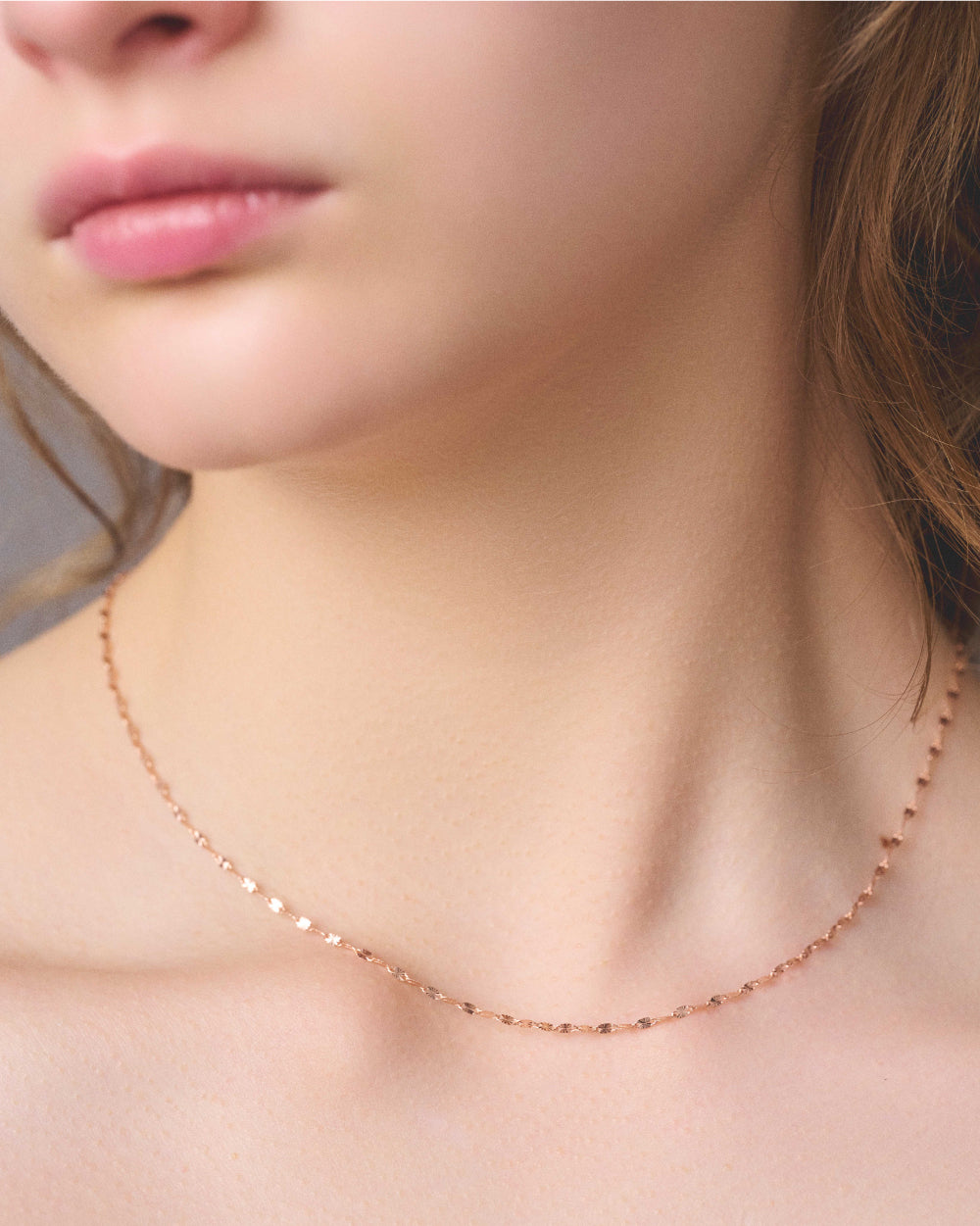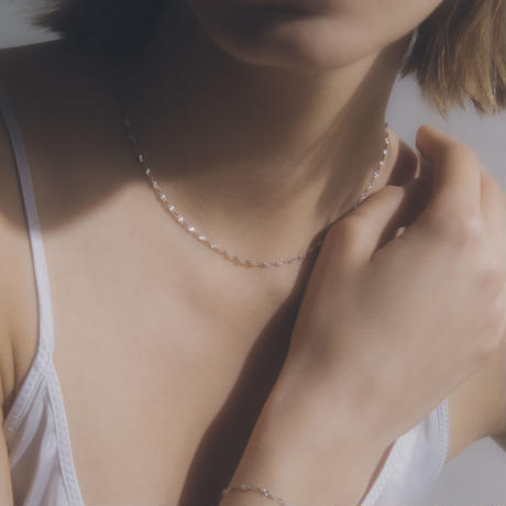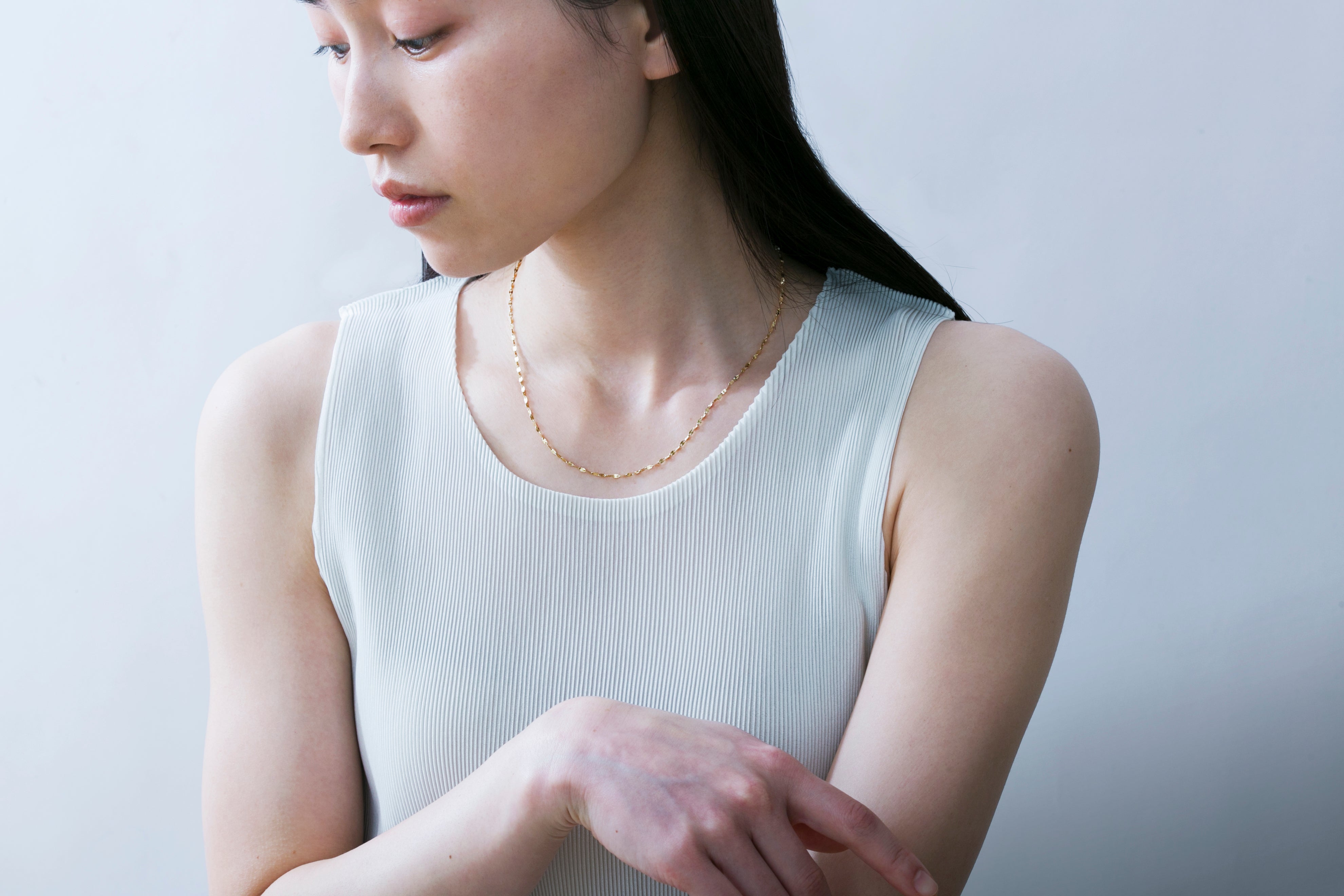 光を受けて輝くように、計算されたカッティングが美しいチェーンを使用したネックレス。