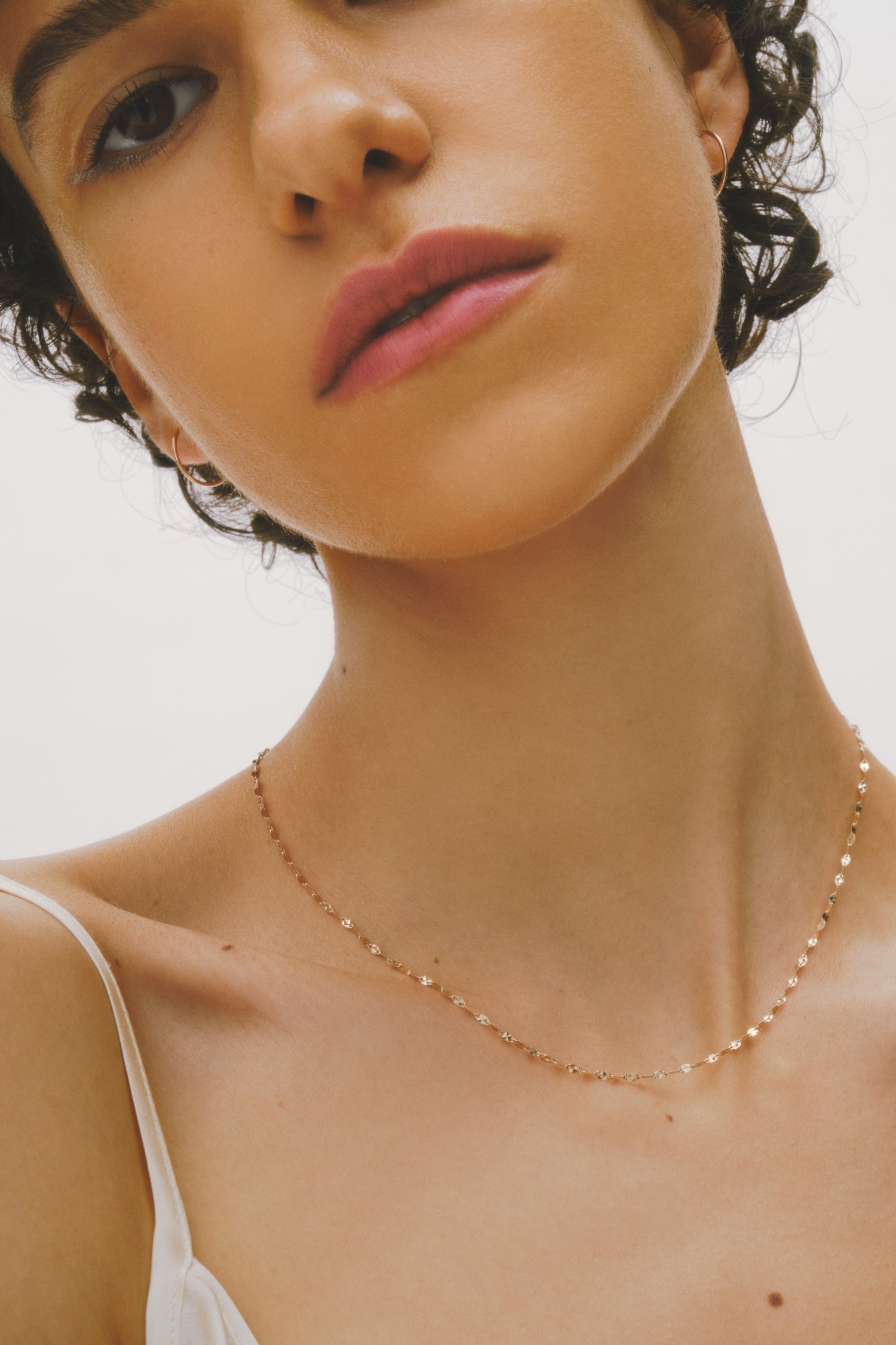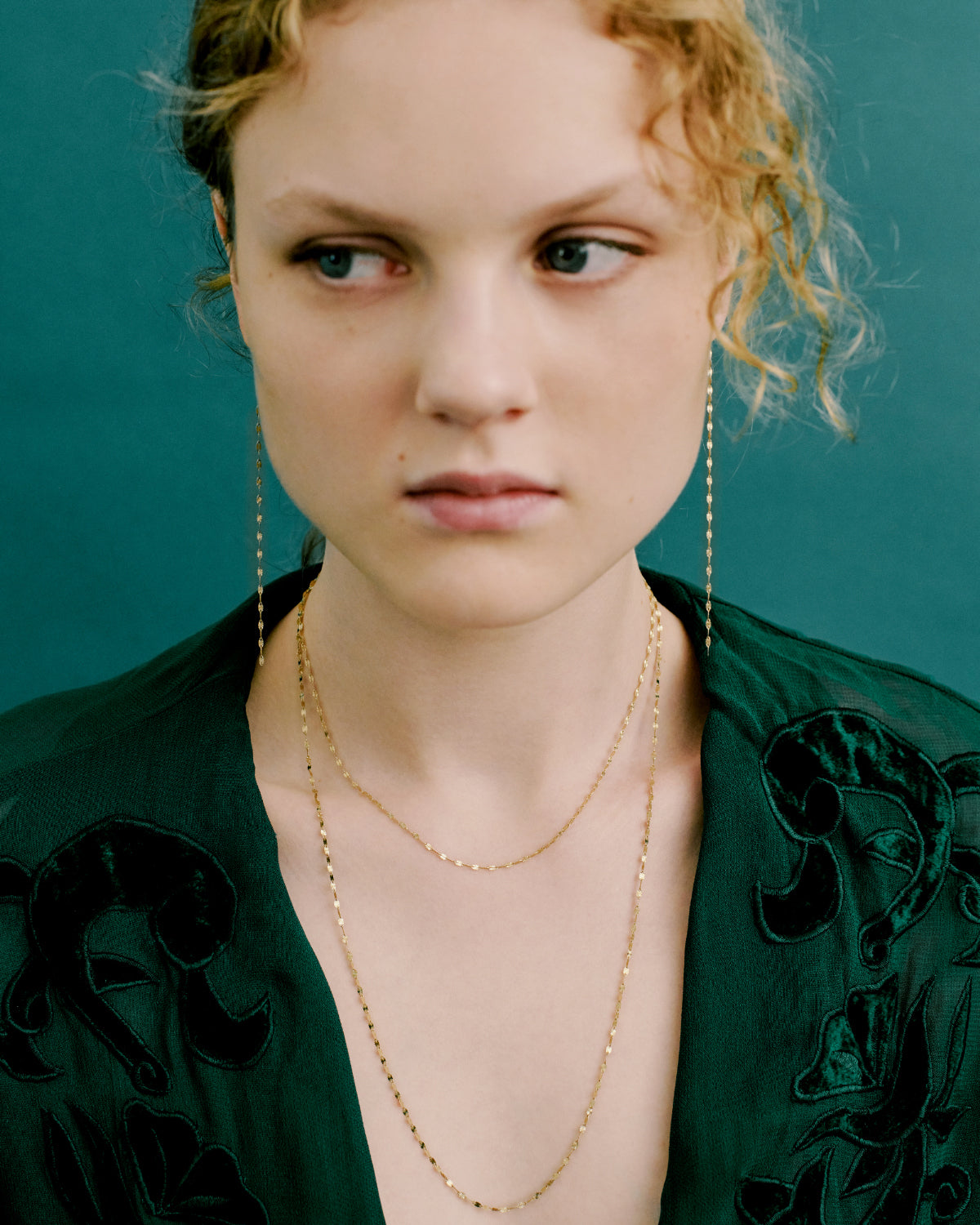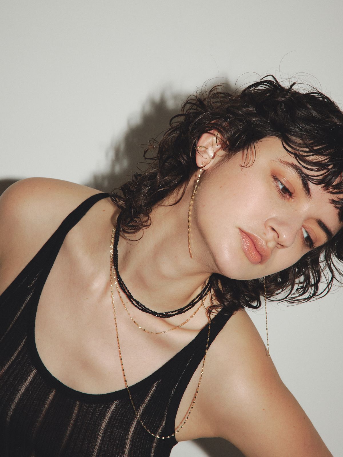 上品なゴールドチェーンは、カジュアルなスタイルに大人っぽさを与えてくれます。