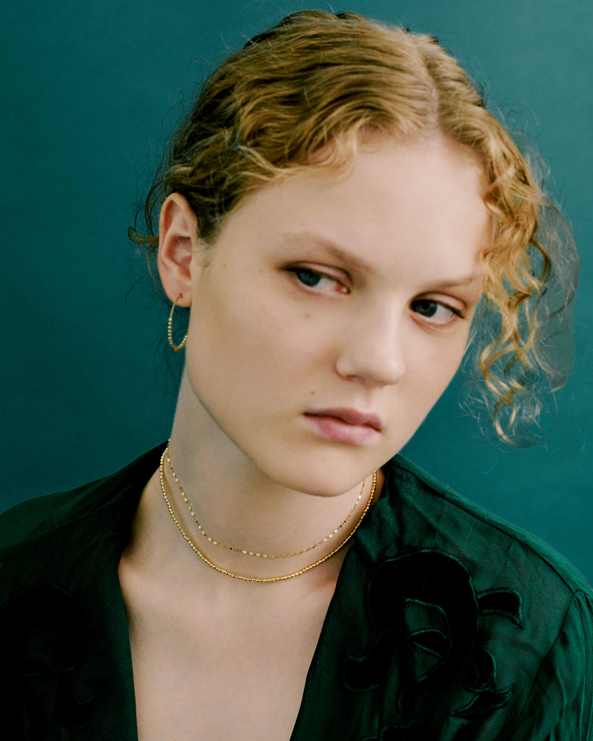 肌によりフィットするチョーカーレングスはモード感が漂います。