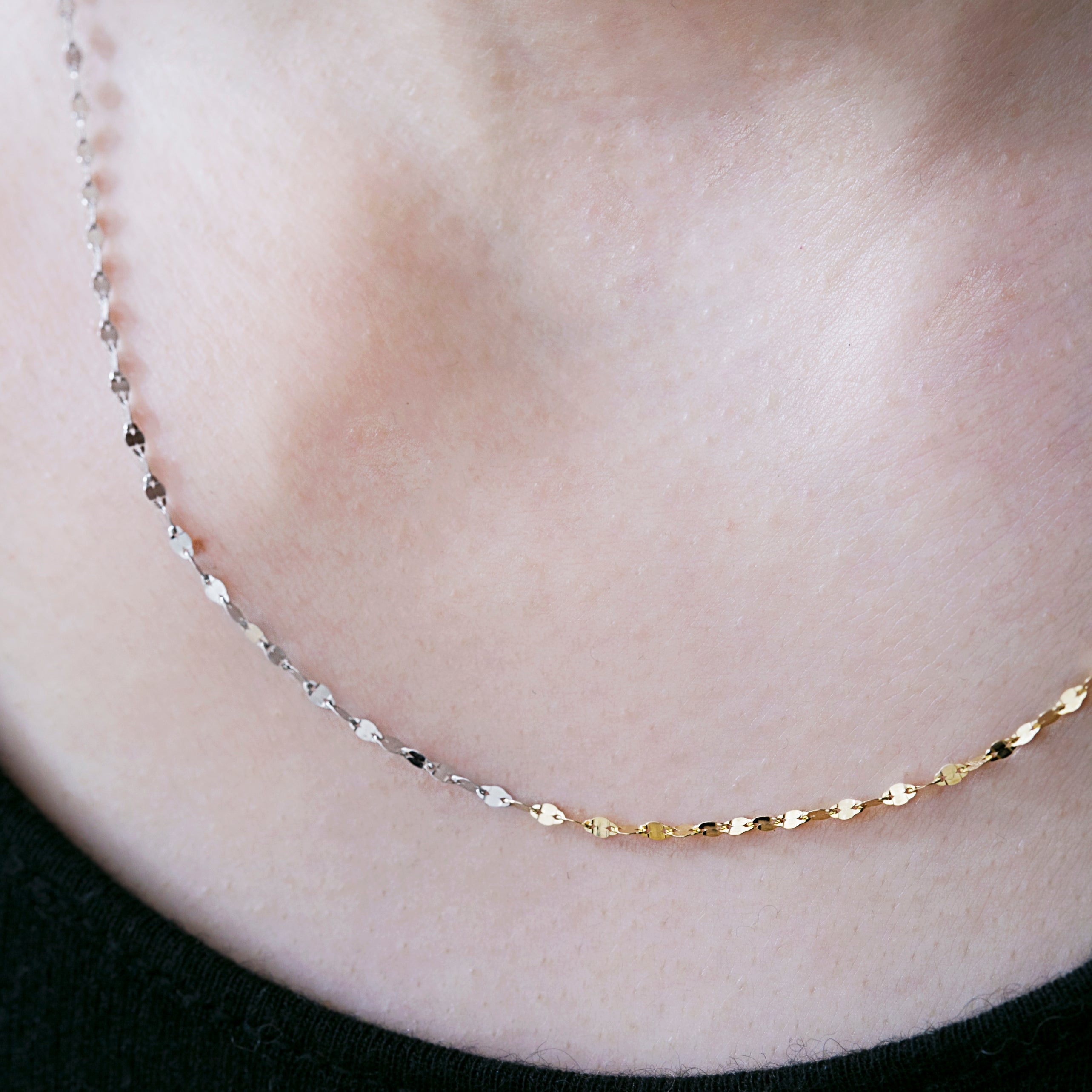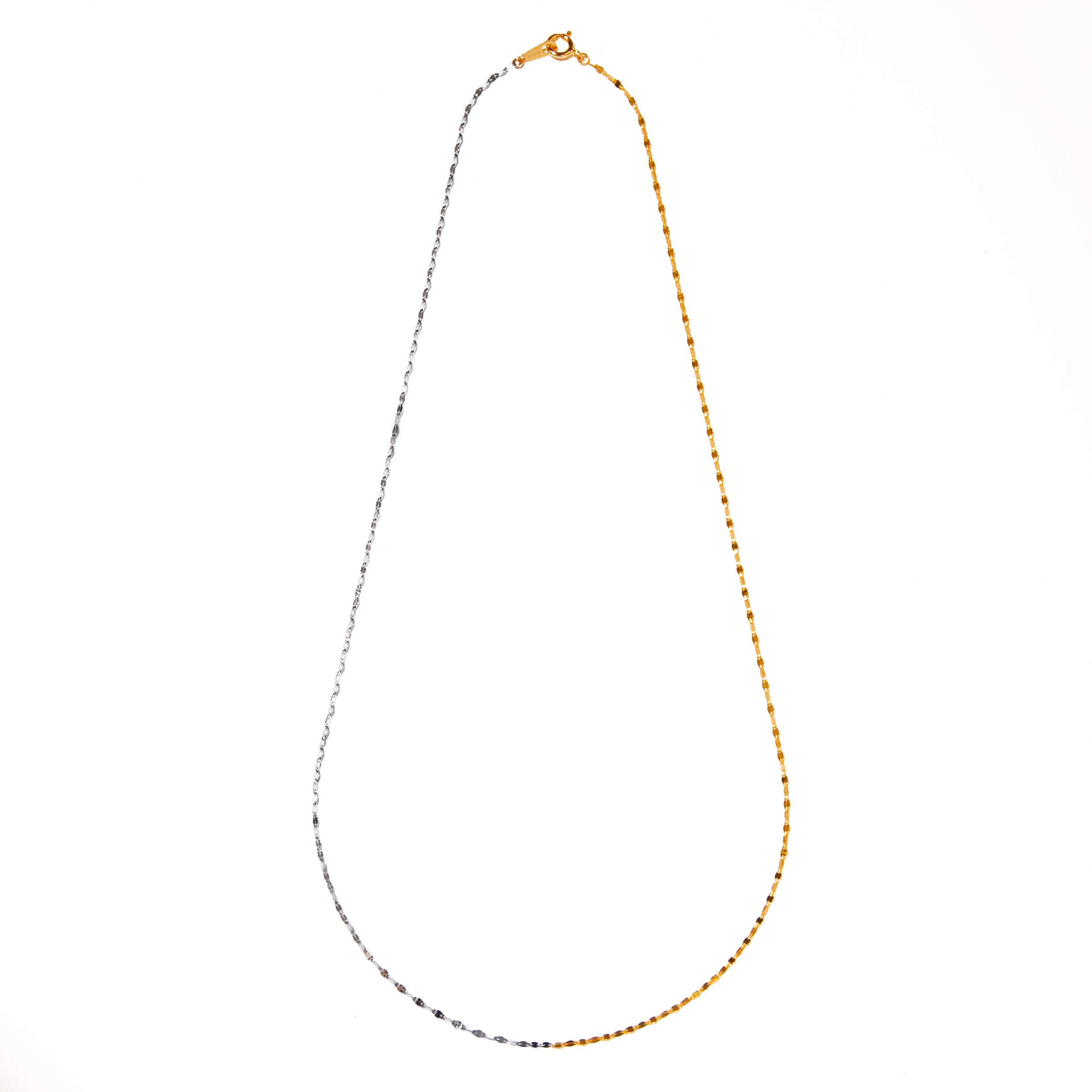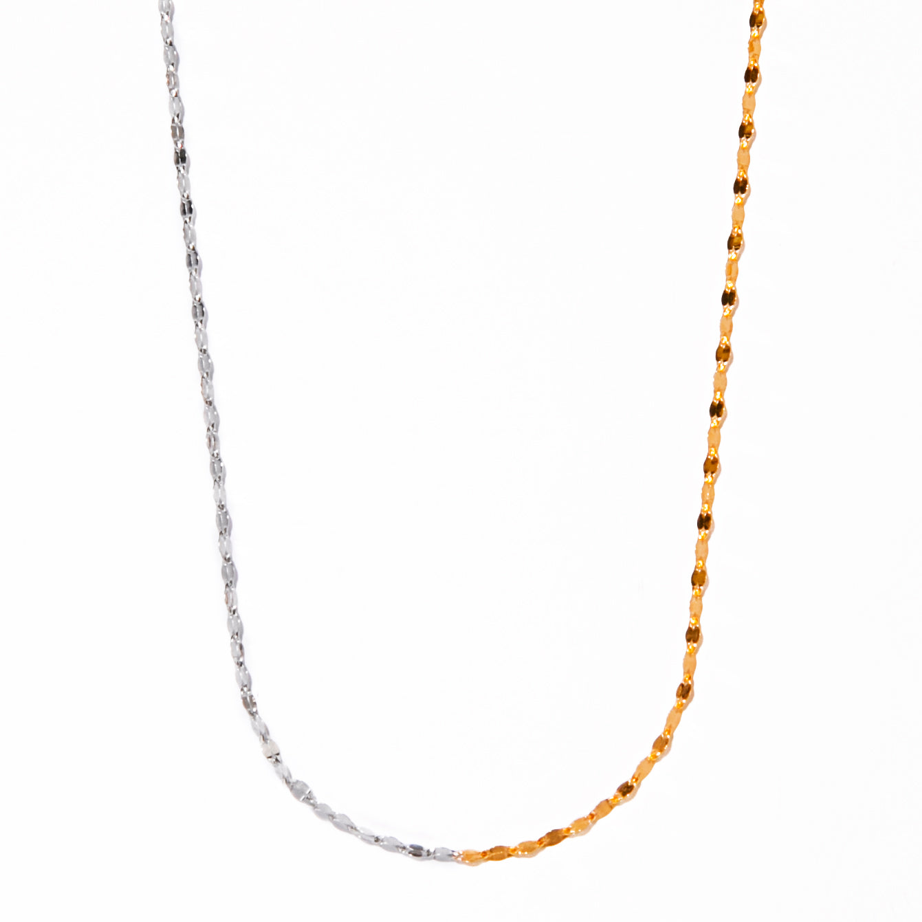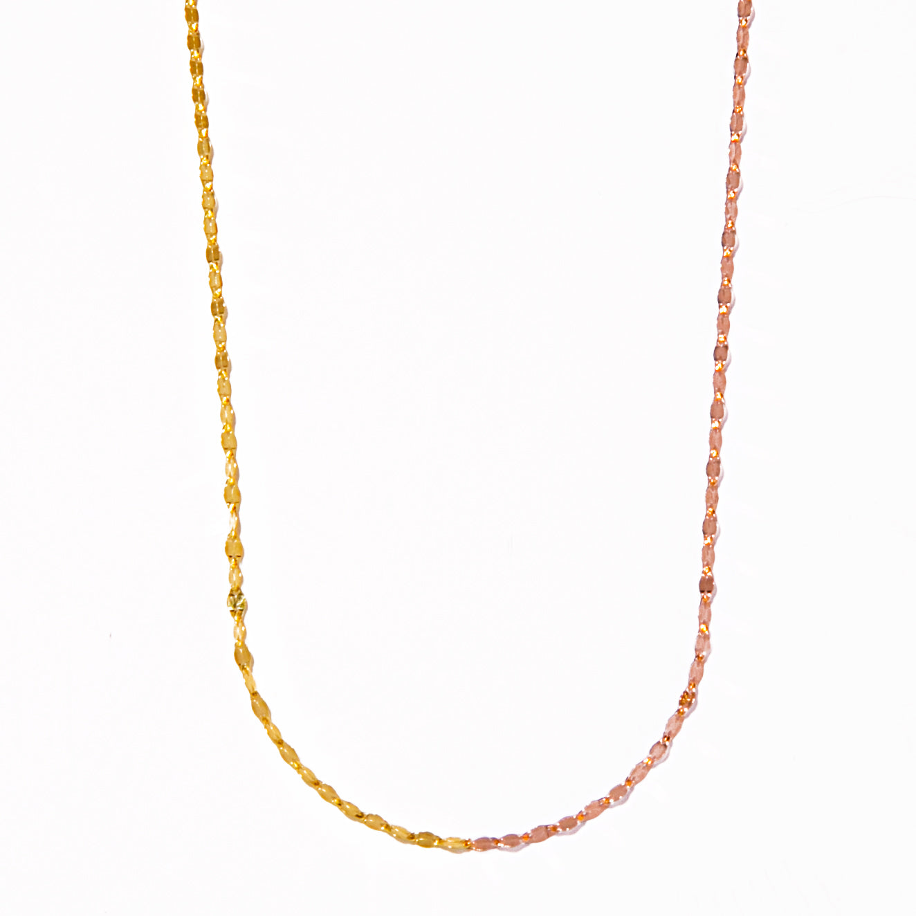 女性らしいピンクゴールド、凛としたホワイトゴールドが組み合わさり華やかさの中にエッジィな雰囲気のあるネックレスです。